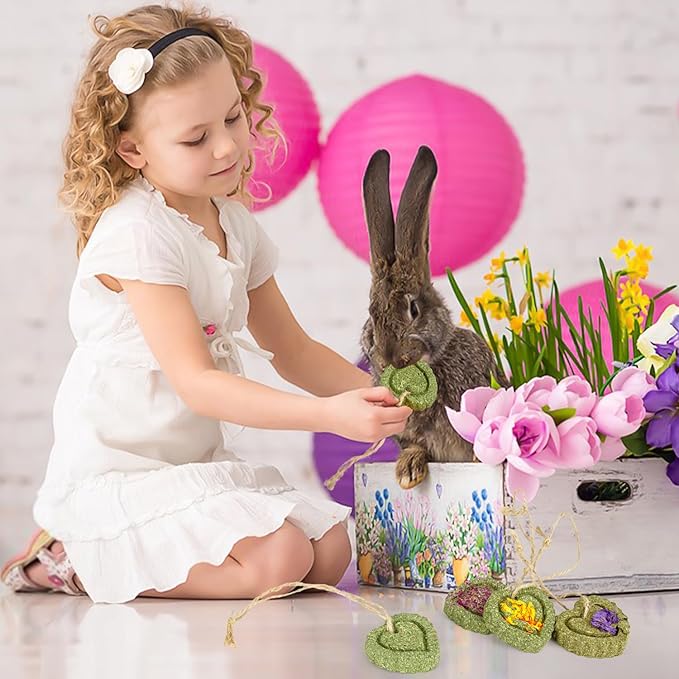 - NATURAL MATERIAL: Timothy hay treats are handmade from 100% natural material, healthy and harmless. Have NO pigment or hormone. Perfect treats and chew toys for small animals like rabbit,bunny,guinea pig,hamster,chinchilla,rat and etc.