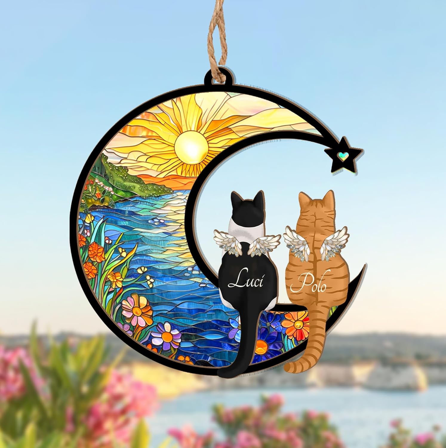 - VERSATILE DECOR & HEARTFELT TRIBUTE: This personalized cat memorial suncatcher is a beautifully crafted keepsake to honor the memory of your beloved cat. With space to customize names and breeds for up to 3 cats, this unique piece serves as a touching reminder of the joy they brought. Perfect for a sunny window, it casts a warm glow reflecting the love shared. Thoughtfully designed as a sympathy gift, this suncatcher brings comfort and a heartfelt tribute to cherished companions.