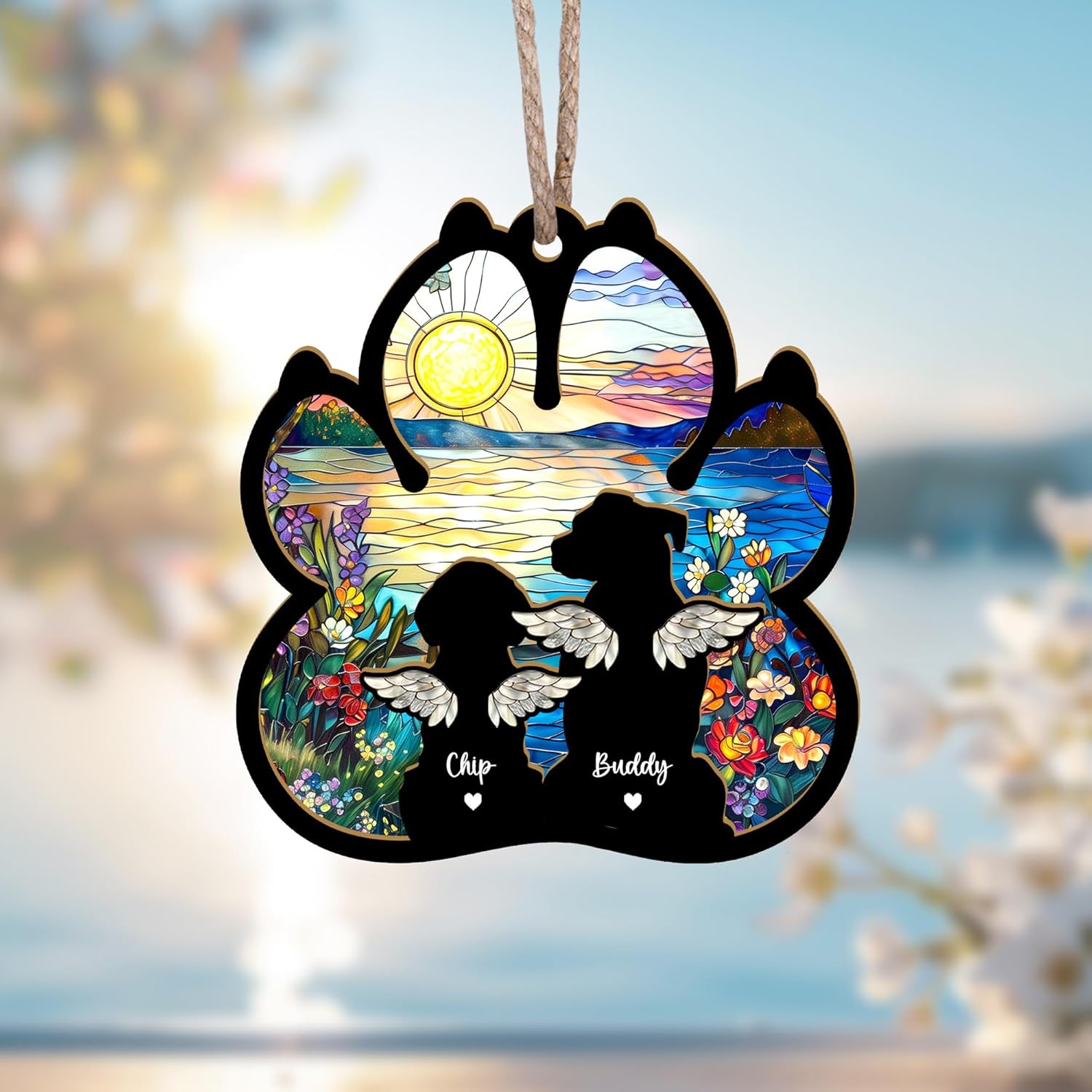 Personalized Dog Memorial Suncatcher – Custom Suncatcher with Name & Breed for Up to 3 Pets, Pet Loss Sympathy Gift, Memorial Keepsake for Dog Lovers