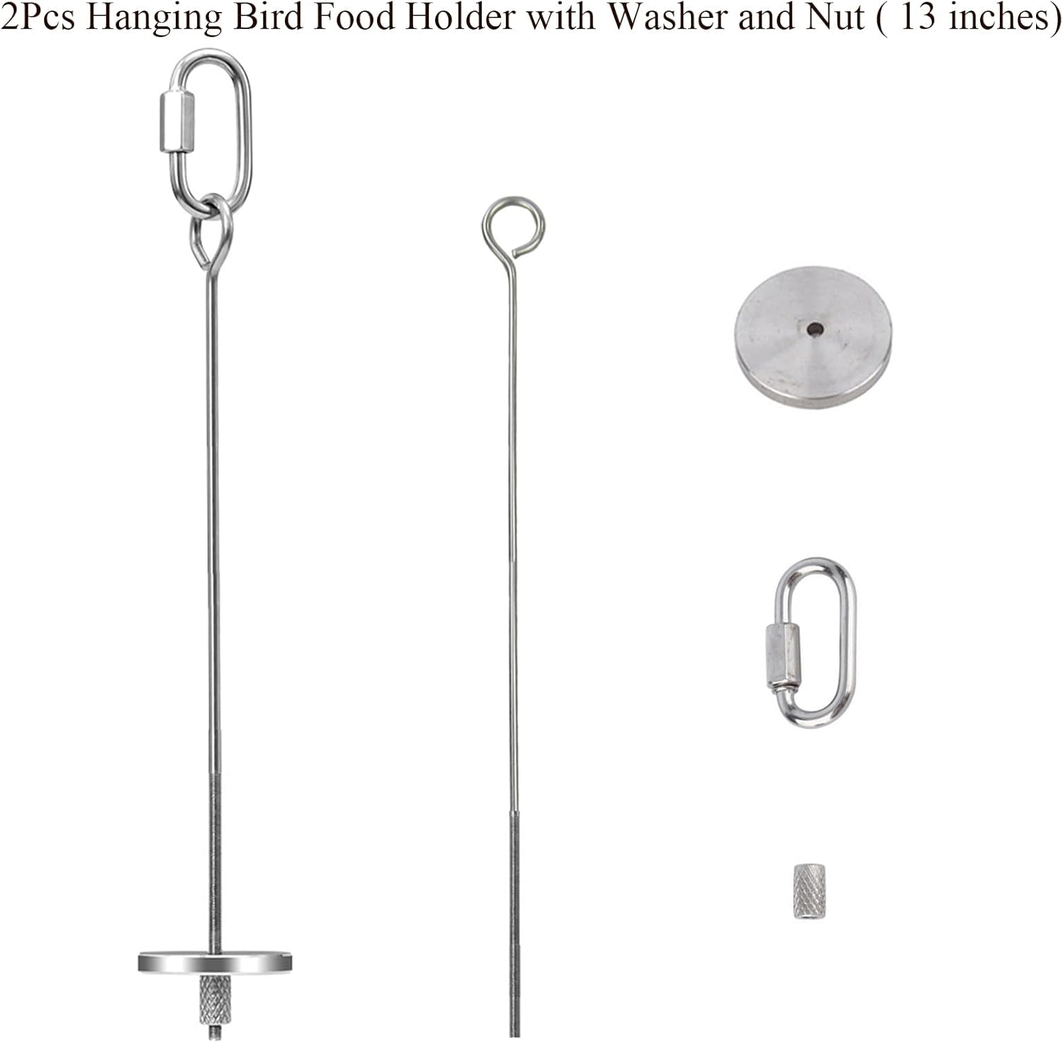 2pcs Hanging Bird Treat Skewer Parrot Fruit Feeder, 13 Inch Stainless Steel Bird Food Holder Parrot Fruit Food Skewer with Washer Nut Parakeet Treat Holder Feeder for Parrot Budgie Conure, LXLVOUEG