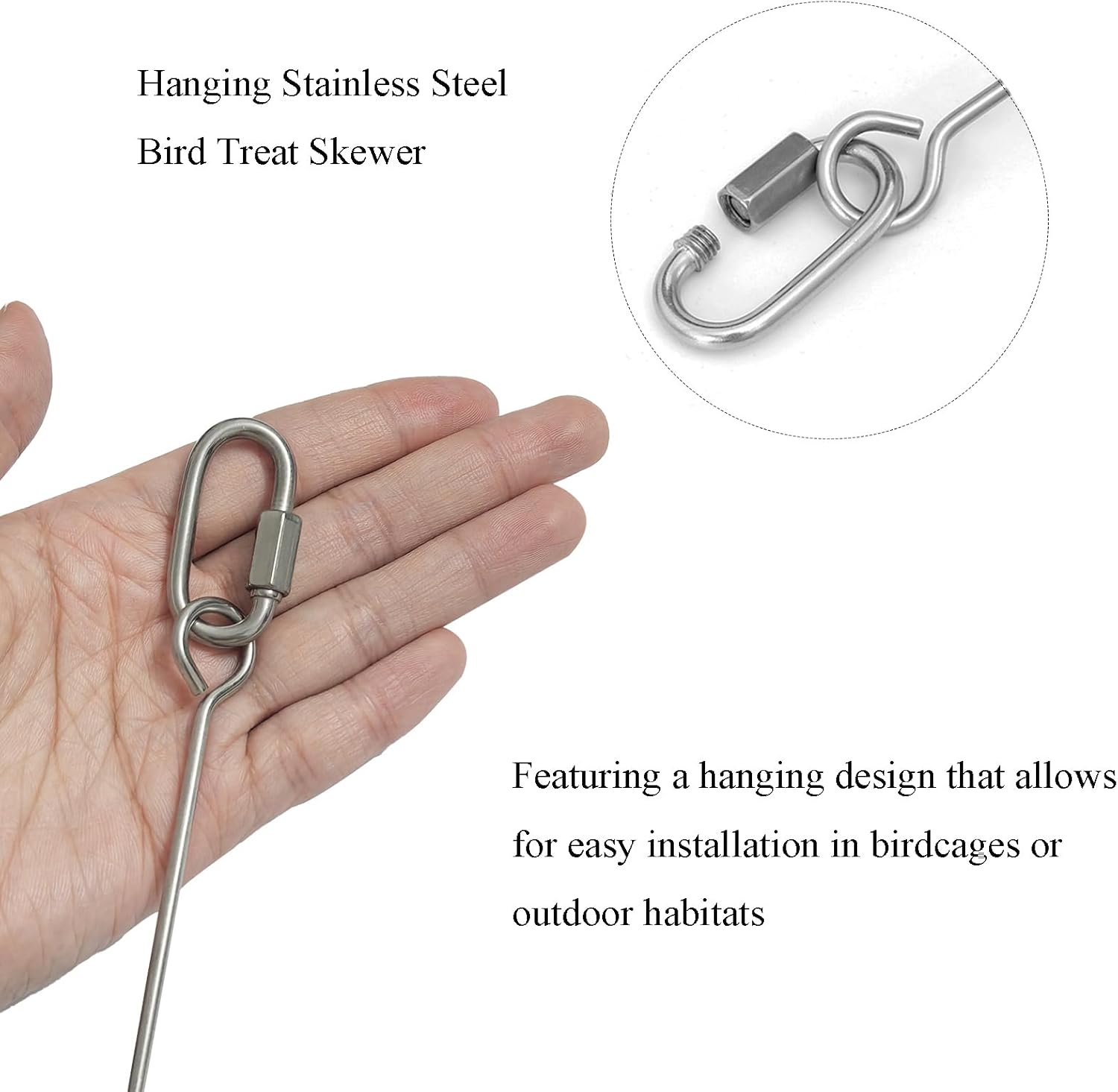 - Size and Quantity: The set contains 2 stainless steel bird treat holders, each 33 cm long. You can use the this parakeet treat skewer holder to pierce fruits and vegetables like apple chunk, baby carrot, or other snack. Suitable for parrot, parakeet, conure, lovebird, cockatoo, budgie, cockatiel, macaw and other small caged animals