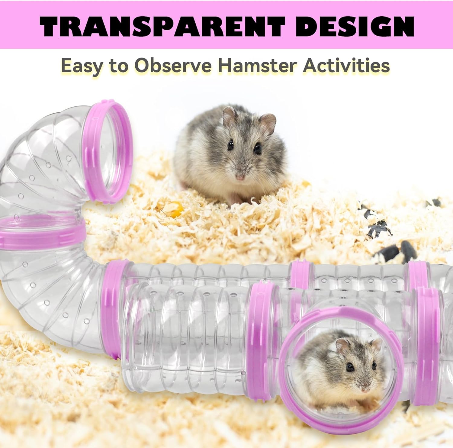 - Transparent Mouse Tubes:The transparent design of the syrian hamster tunnel allows you to clearly observe the playful adventures of the hamster, and the breathing holes in the pink hamster cage tube ensure that the hamster has sufficient air circulation without worrying about the safety of the pet
