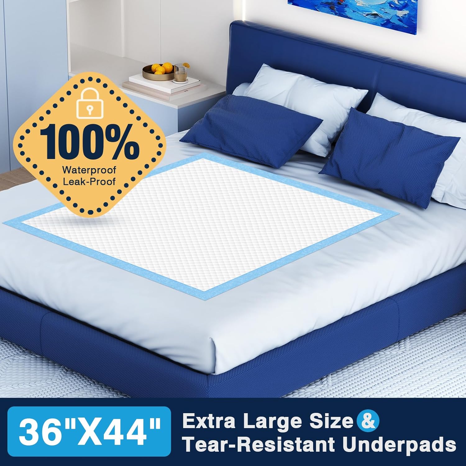 AAY Heavy Duty Disposable Bed Pads 36"X44" (40pcs) Tear-Resistant Cloth Backing Underpads Extra Large Super Absorbent Pee Pads Incontinence Waterproof Chucks Pads for Adults Elderly, Kids or Puppy