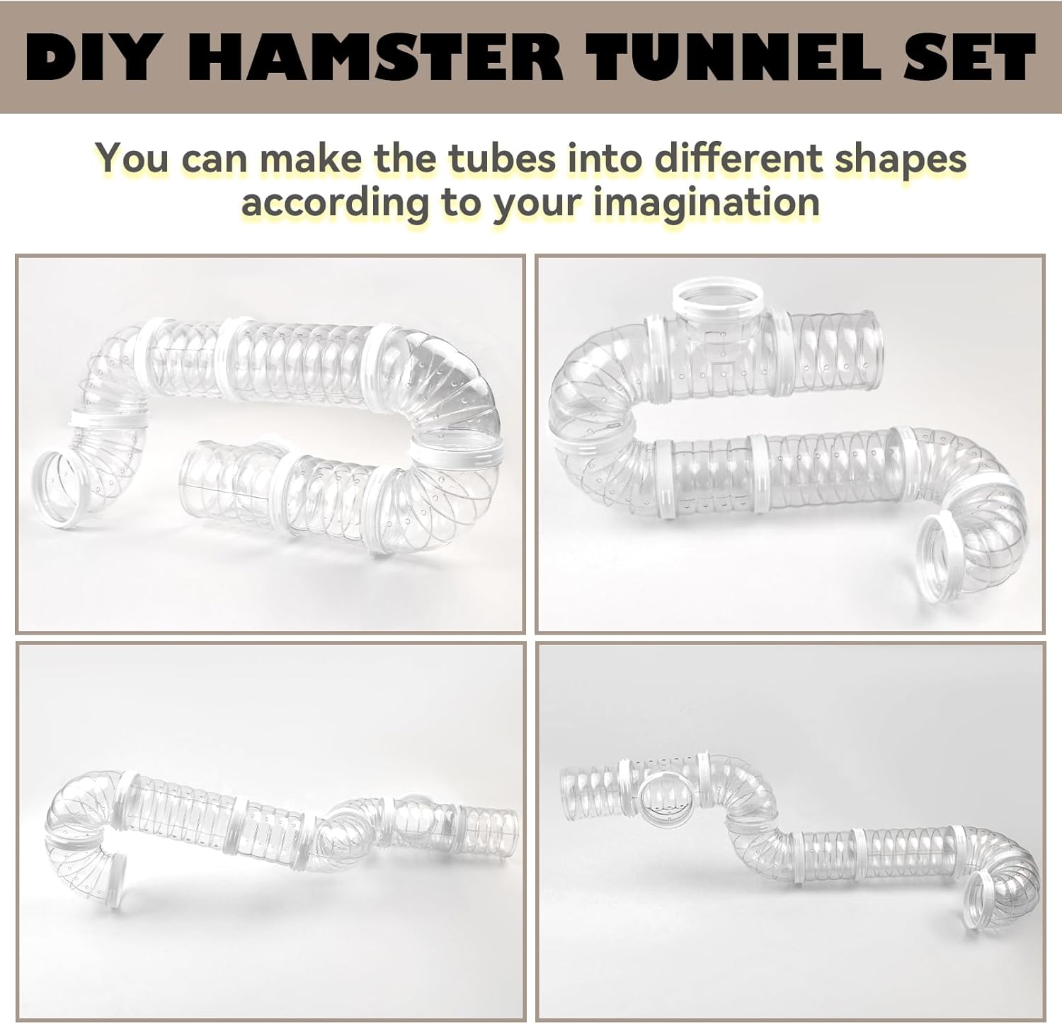 - Expanding space:The gerbil external tunnel can be assembled into different shapes at will, you can create mazes, hideouts or connect to other hamster habitats, creating more space for your hamster to move around, enhancing their ability to climb and explore, and fulfilling the playful nature of rats