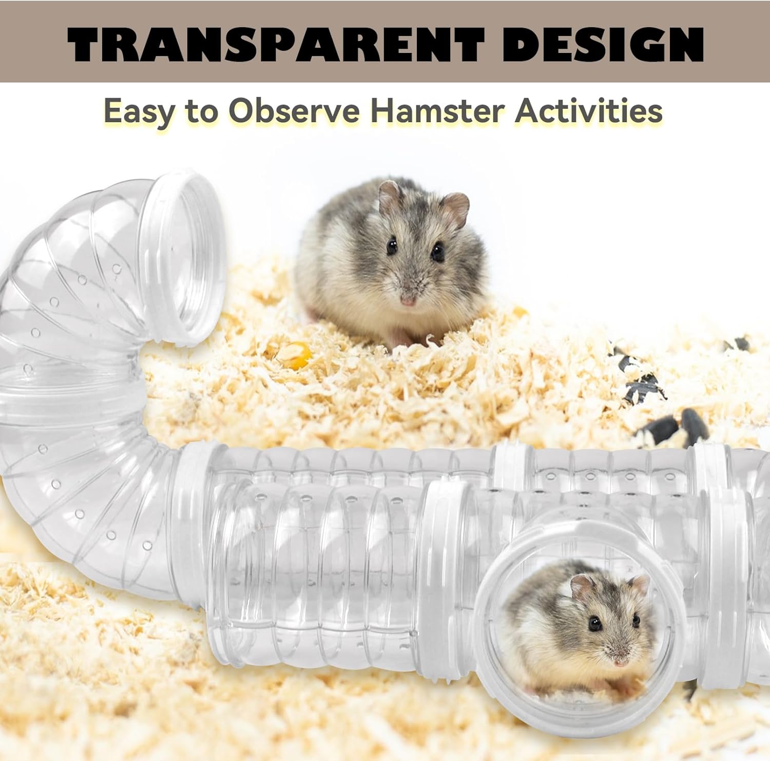 - Transparent Pipe:The transparent design of the hamster tunnel allows you to clearly observe the playful adventures of the hamster, and the breathing holes in the pipe ensure that the hamster has sufficient air circulation without worrying about the safety of the pet