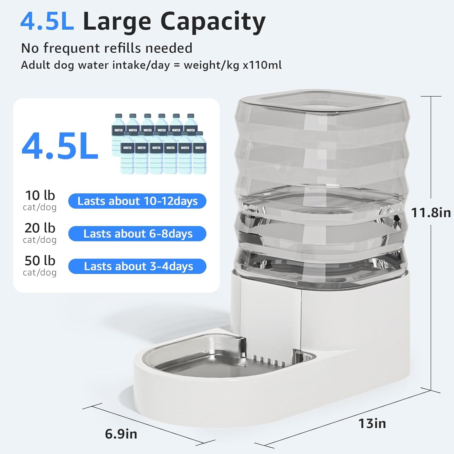 Gravity 4.5L Dog and Cat Water Bowl Dispenser, Automatic Stainless Steel Dog Water Bowl, 100% BPA-Free, Self-Filling Large Capacity Pet Water Feeder for Dogs and Cats