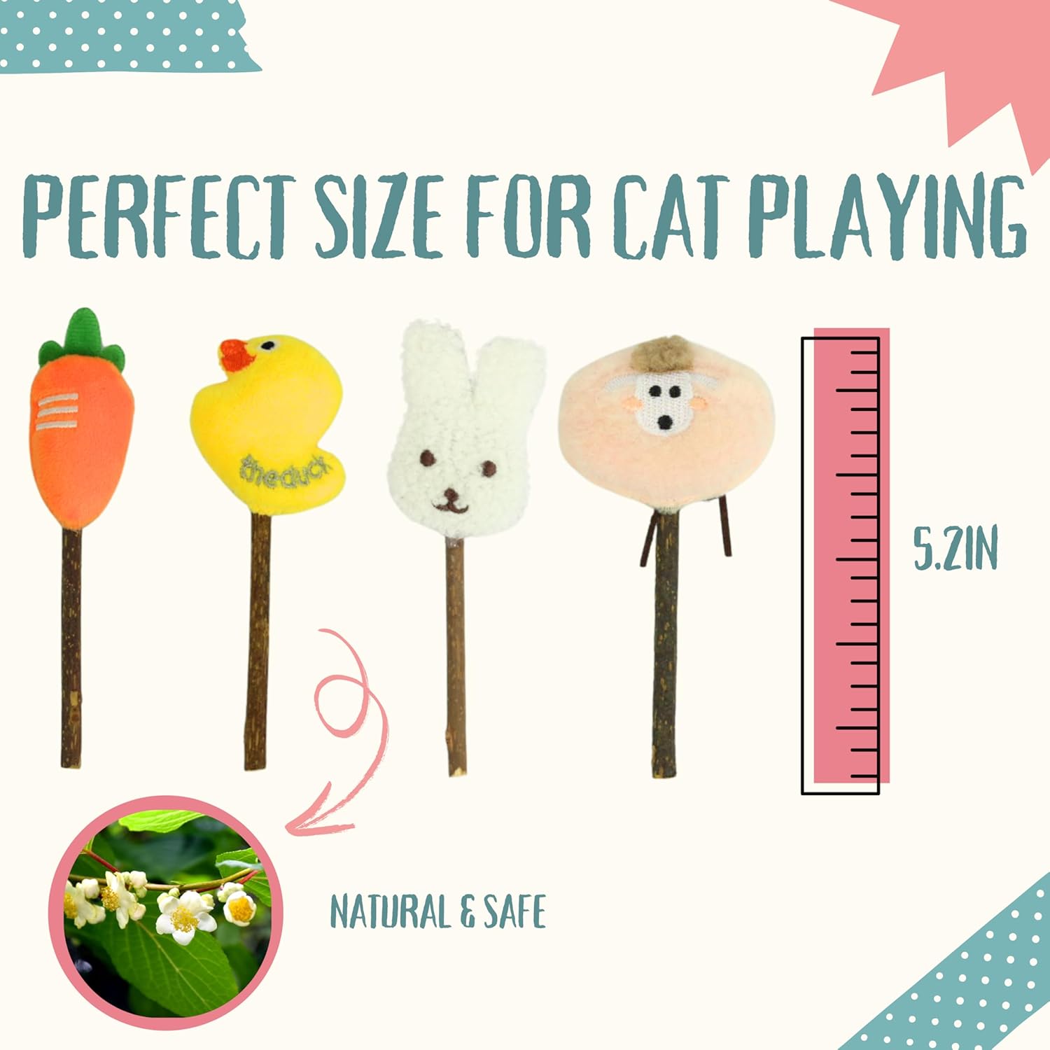Nature Silvervine Sticks for Cats, 4 Pack Cat Toys for Indoor Cats, Kitten Chew Toy for Teeth Cleaning, Carrot Duck Sheep Bunny Plush