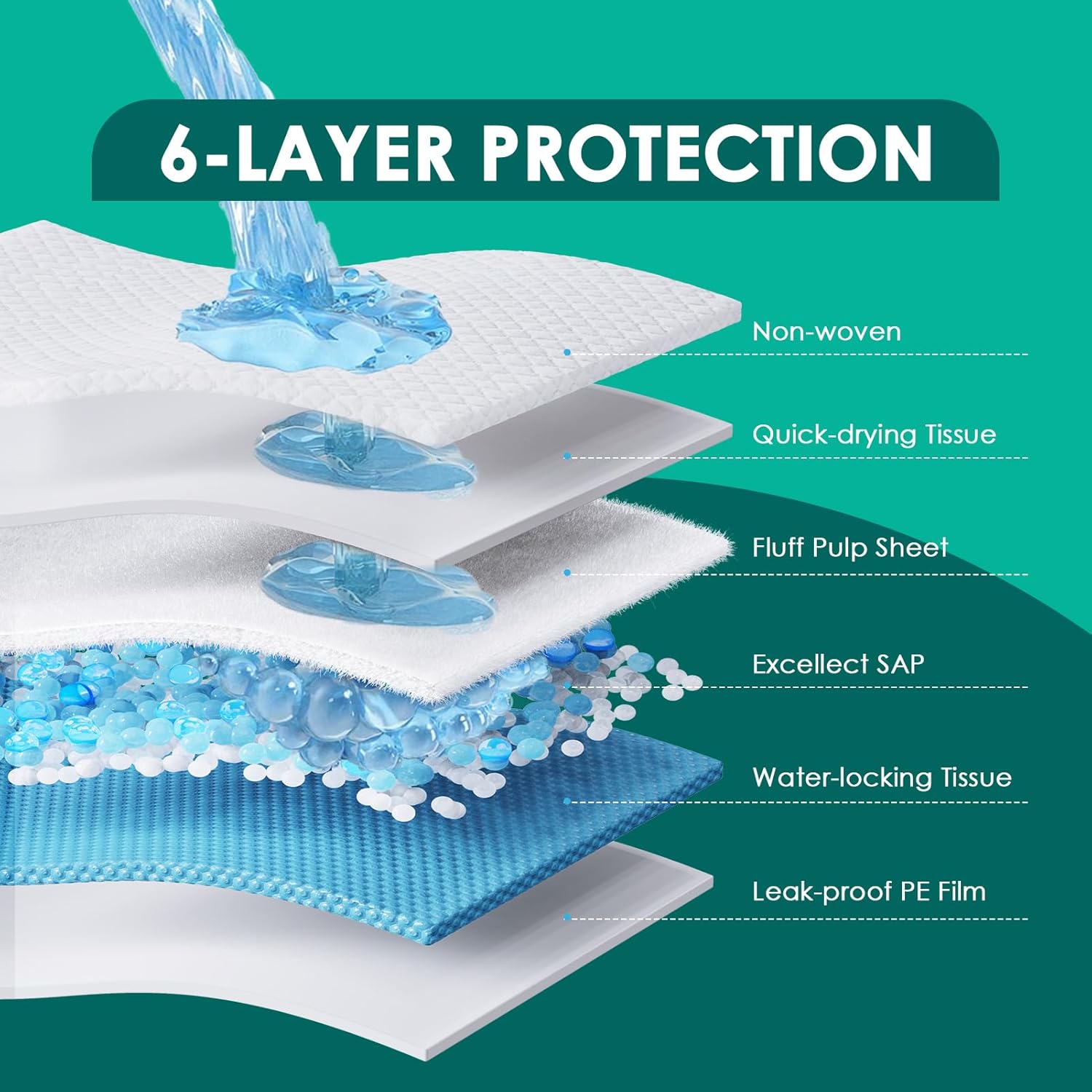 - 【Super Absorbent & 6-Layers Protection】XL dog pee pads are constructed with 6 robust layers, making them thicker, heavier, and more absorbent than most puppy pads, capable of holding up to 10 cups (100 ml/cup, 1000 ml total) of liquid, keeping your floors remain clean and dry