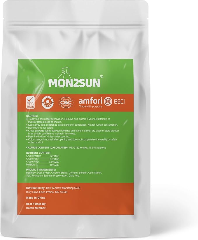 MON2SUN Dog Treats 5 Inch Double Flavor Chicken & Duck Wrapped Rawhide Sticks, Teeth Cleaning for Small Dogs, 21.16 oz (40 Count)