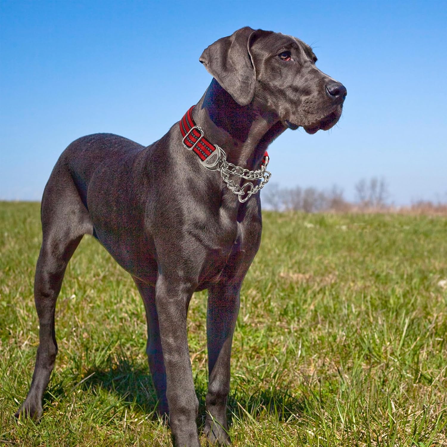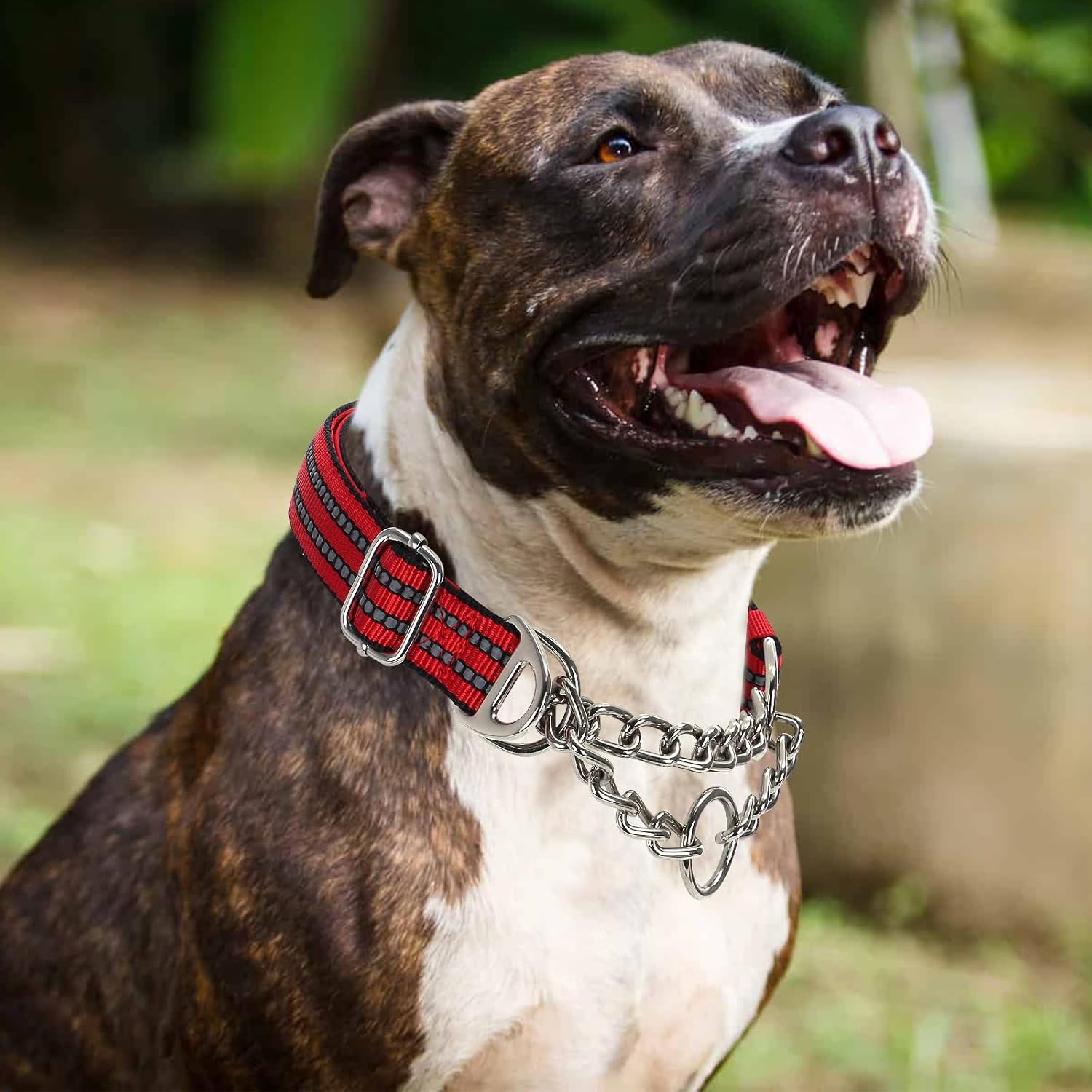 Martingale Dog Collar for Training,Adjustable No Pull Reflective Collar with Chain Collars for X-Large Dogs Secure/Comfortable Walking Collar for Night Safety(Red XL)
