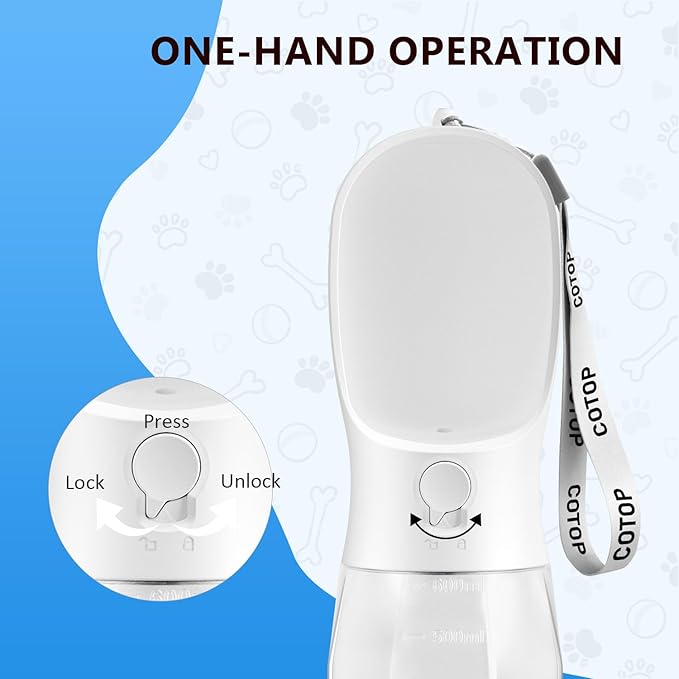 - 【Easy to Use 】 Turn left and depress the lock button, the water in the bottle can flow to bowl or flow back from bowl to bottle slowly. There is no waste of water. All operations can be finished by one hand, very easy to use. ALWAYS REMEMBER to turn right before putting the bottle into your bag, prevent leaking.