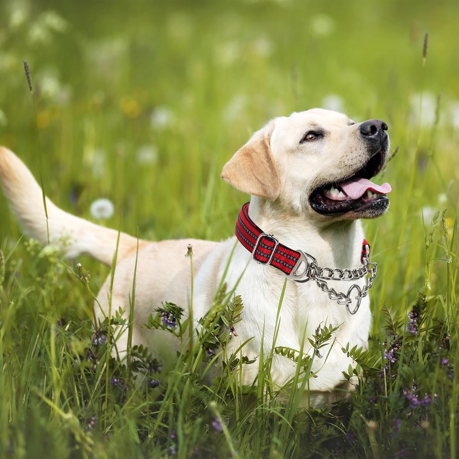 Martingale Dog Collar for Training,Adjustable No Pull Reflective Collar with Chain for Medium to Large Dogs Secure/Comfortable Walking Collar for Night Safety(Red L)