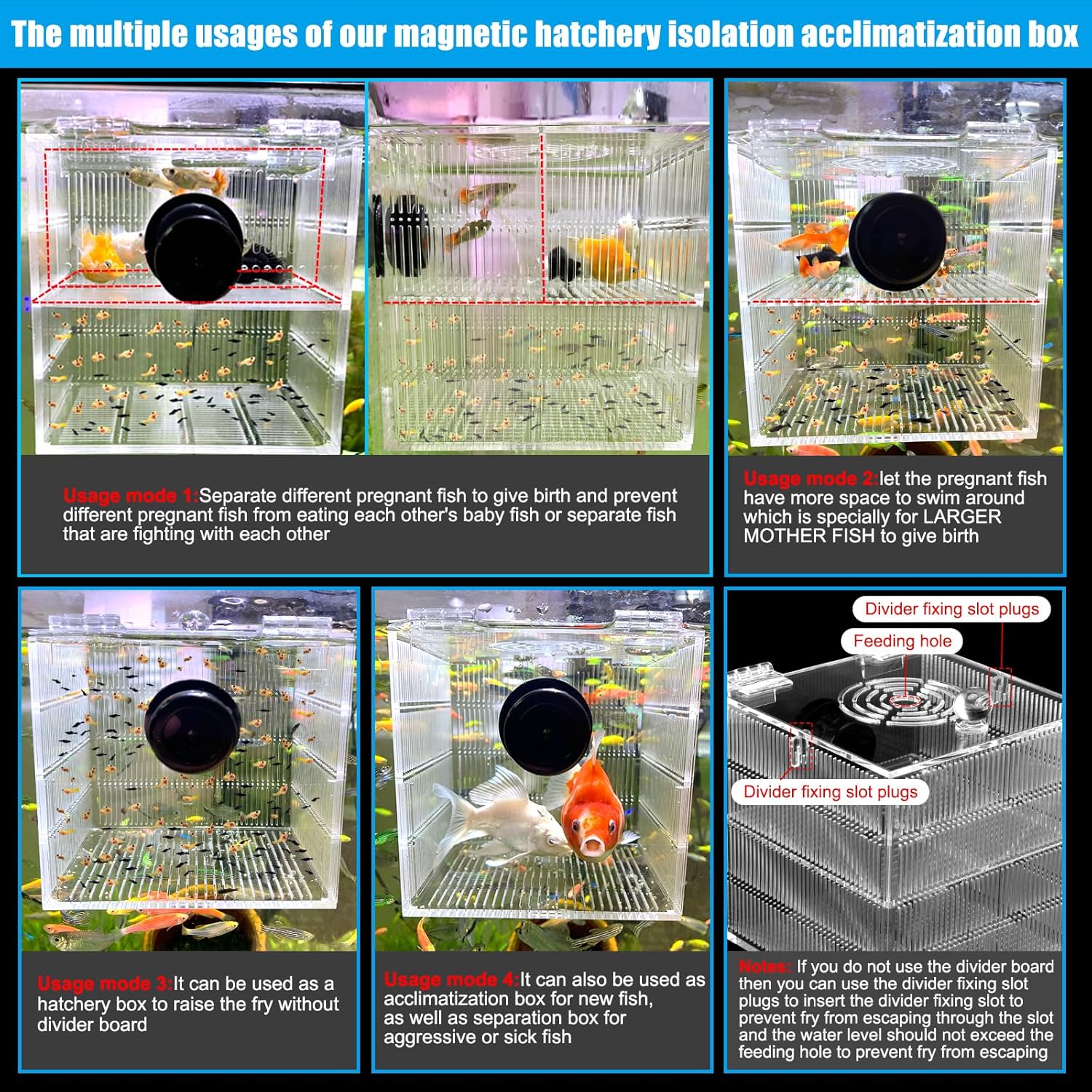 - Style : Magnetic fiish breeding box,fish tank isolation box,aquarium divider separator tank box,aquarium fish acclimation hatchery tank box for Guppy molly baby fish Betta Shrimp Clownfish Aggressive or Injured Fish Magnetic fiish breeding box,fish tank isolation box,aquarium divider separator tank box,aquarium fish acclimation hatchery tank box for G… See more