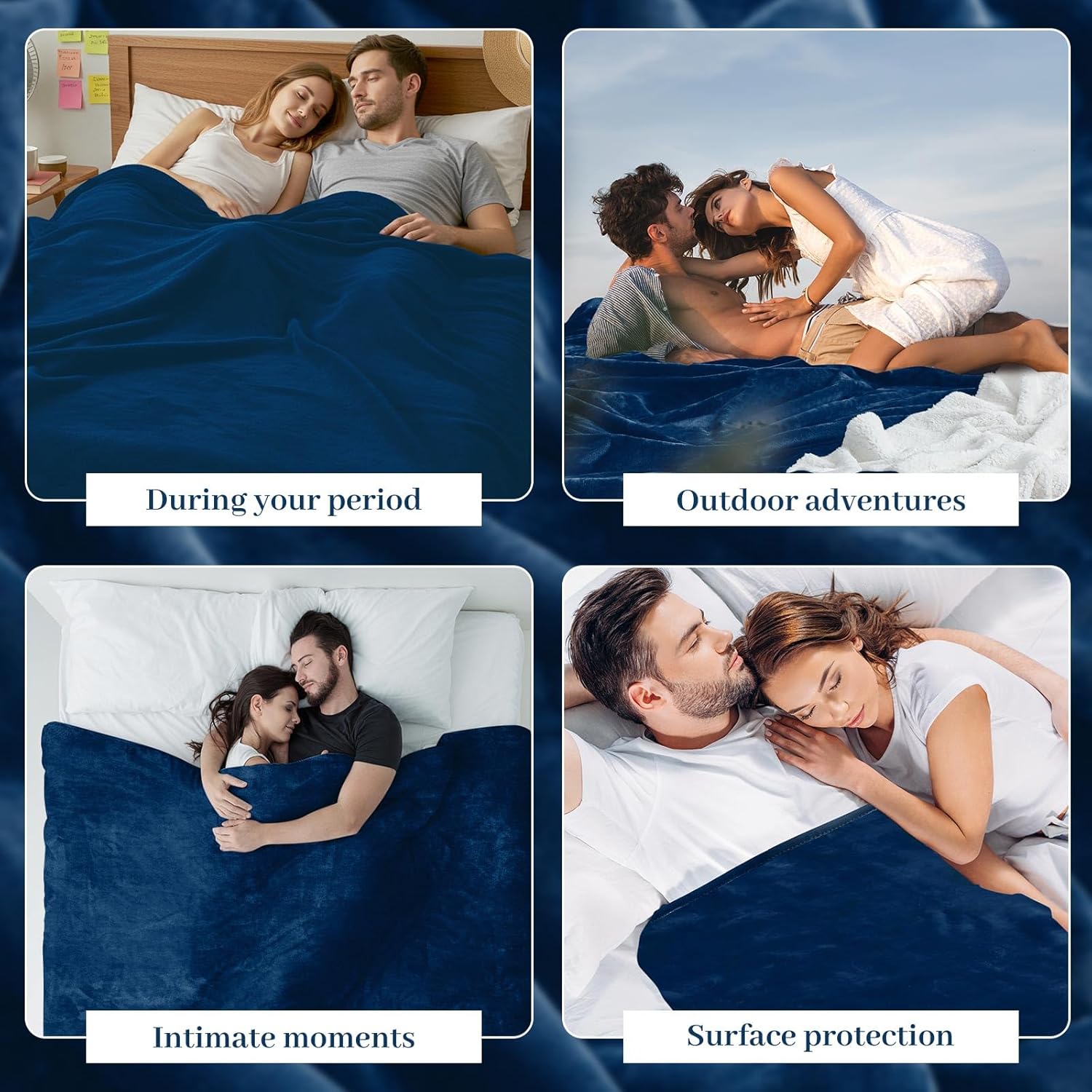 - Queen Size: the love navy blue waterproof bed blanket delivers a comfort and security with its dimensions of 80 x 80 inches; This queen size design provide you get enough room to feel safe and protected; Whether you're enjoying a night or having a romantic night in, let it's size bring you luxurious comfort while serving its primary duty of protecting your furniture from any unplanned spills or accidents