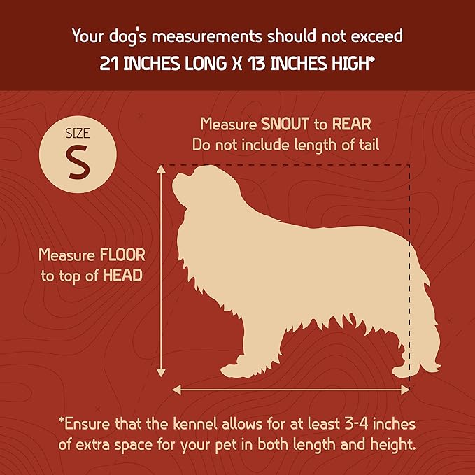 - Your dog's measurements should be under 21" L x 13" H for small kennel - 2 dishes and 4 live animal stickers metal bolt and nuts included