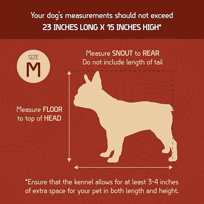 - Your dog's measurements should be under 24"" L x 16"" H for medium kennel - 2 dishes and 4 live animal stickers metal bolt and nuts included