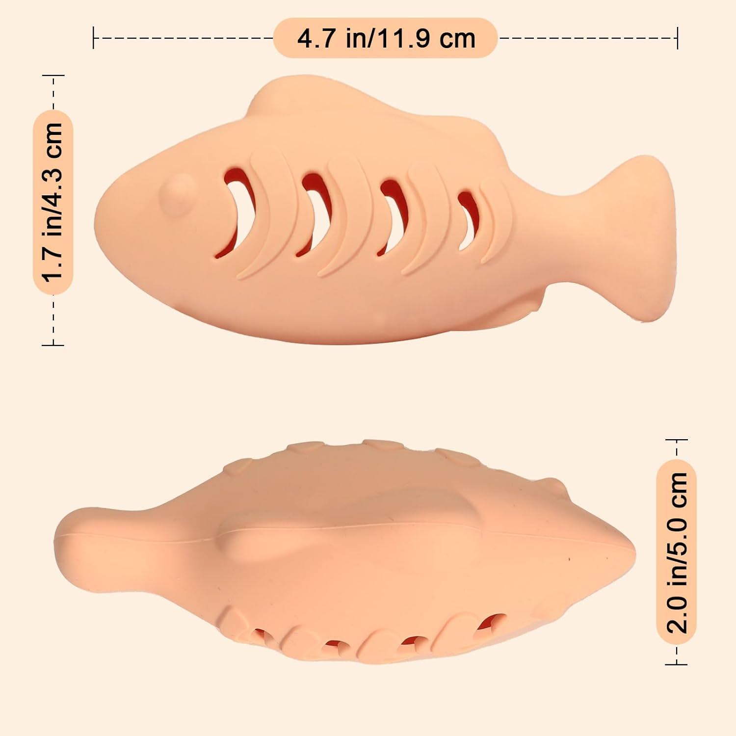 - HUNTING DESIGN - HOLLOW FISH SHAPE: Trigger cat's natural instincts with this prey-inspired fish toy! The hollow silicone body (4.7"x1.7"x2") mimics prey while being lightweight enough for batting, carrying, biting, and pouncing fun.