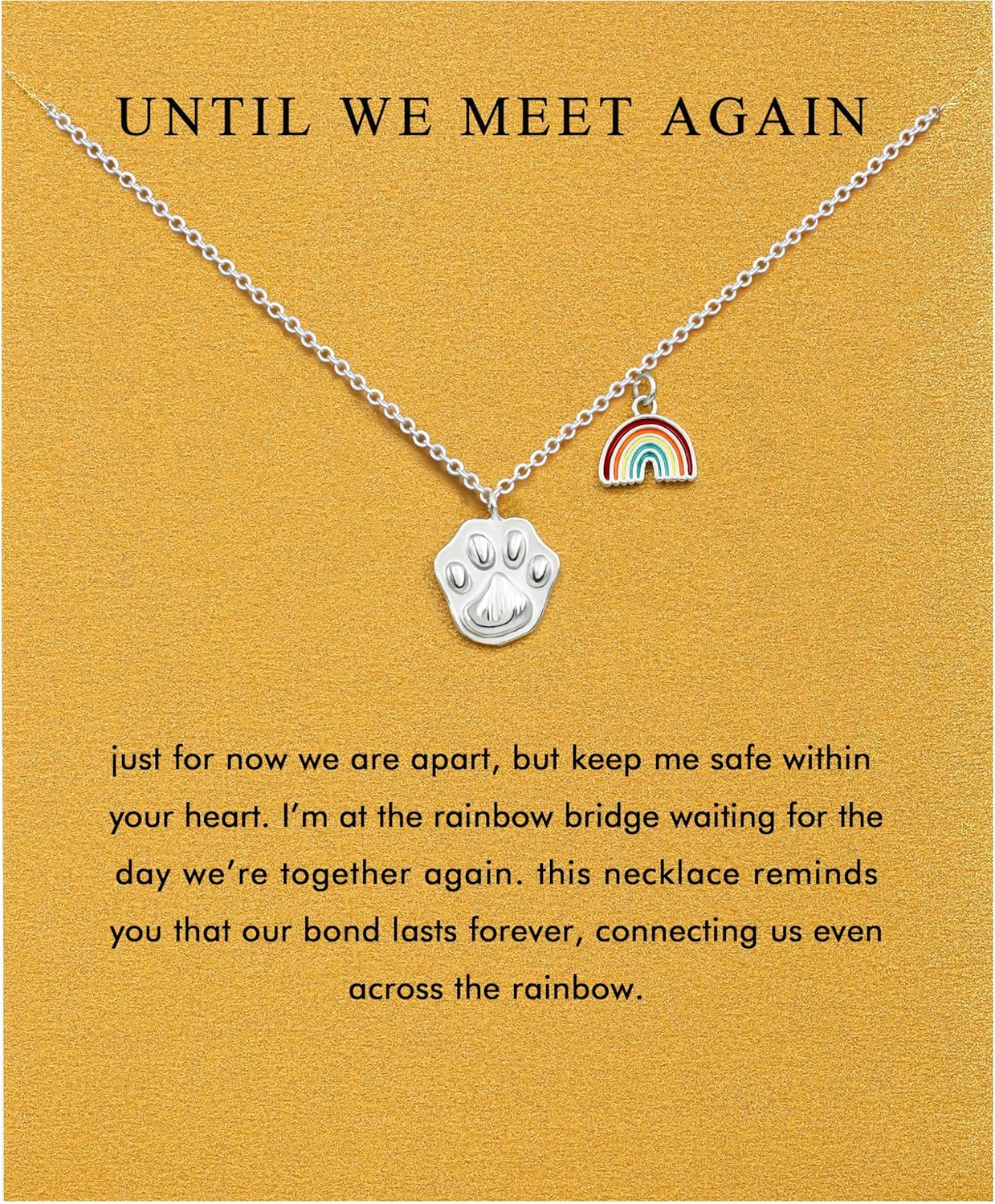 - 【Rainbow Bridge】Just for now we are apart, but keep me safe within your heart. I'm at the rainbow bridge waiting for the day we're together again. This necklace reminds you that our bond lasts forever, connecting us even across the rainbow
