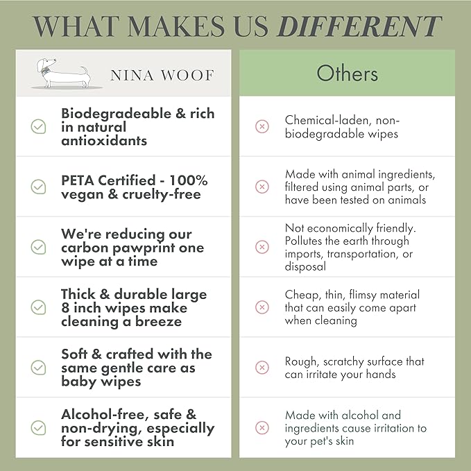 - PLANT-POWERED: Opt for a premium choice made with naturally derived ingredients. Our plant-based wipes are suitable for all dogs, serving as your pet odor eliminator and offering an eco-friendly, cruelty-free alternative to traditional bathing dog shampoo and conditioner.