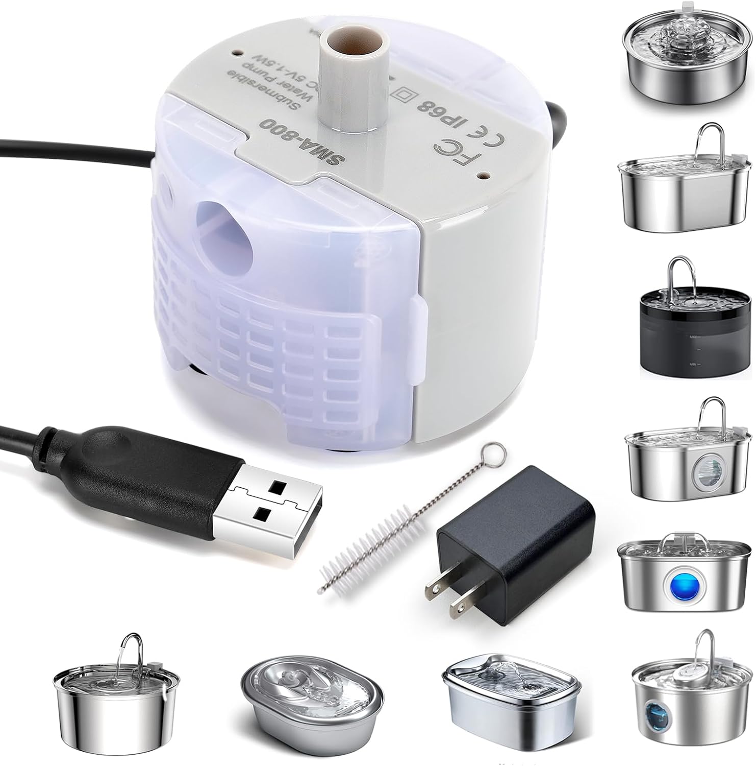 Cat Water Fountain Pump,Pet Water Fountains Pumps Replacement SMA-800 Submersible Motor,Cat Fountain Pump for Stainless Steel Cat Water Dispenser