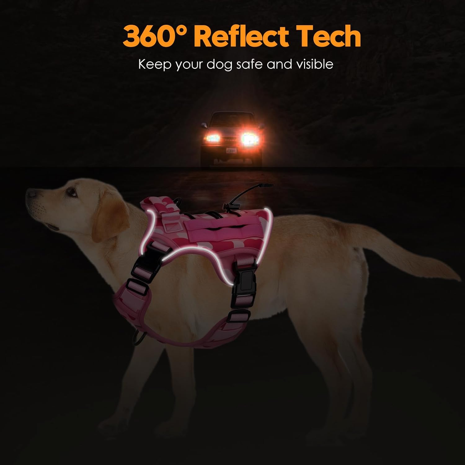 Heavy-Duty Tactical Dog Harness for Large Dogs, No Pull Adjustable Reflective Pet Vest with Molle System, K9 Military-Grade Control for Service Training, Outdoor & 10+ Breeds, Pink Camo, Small