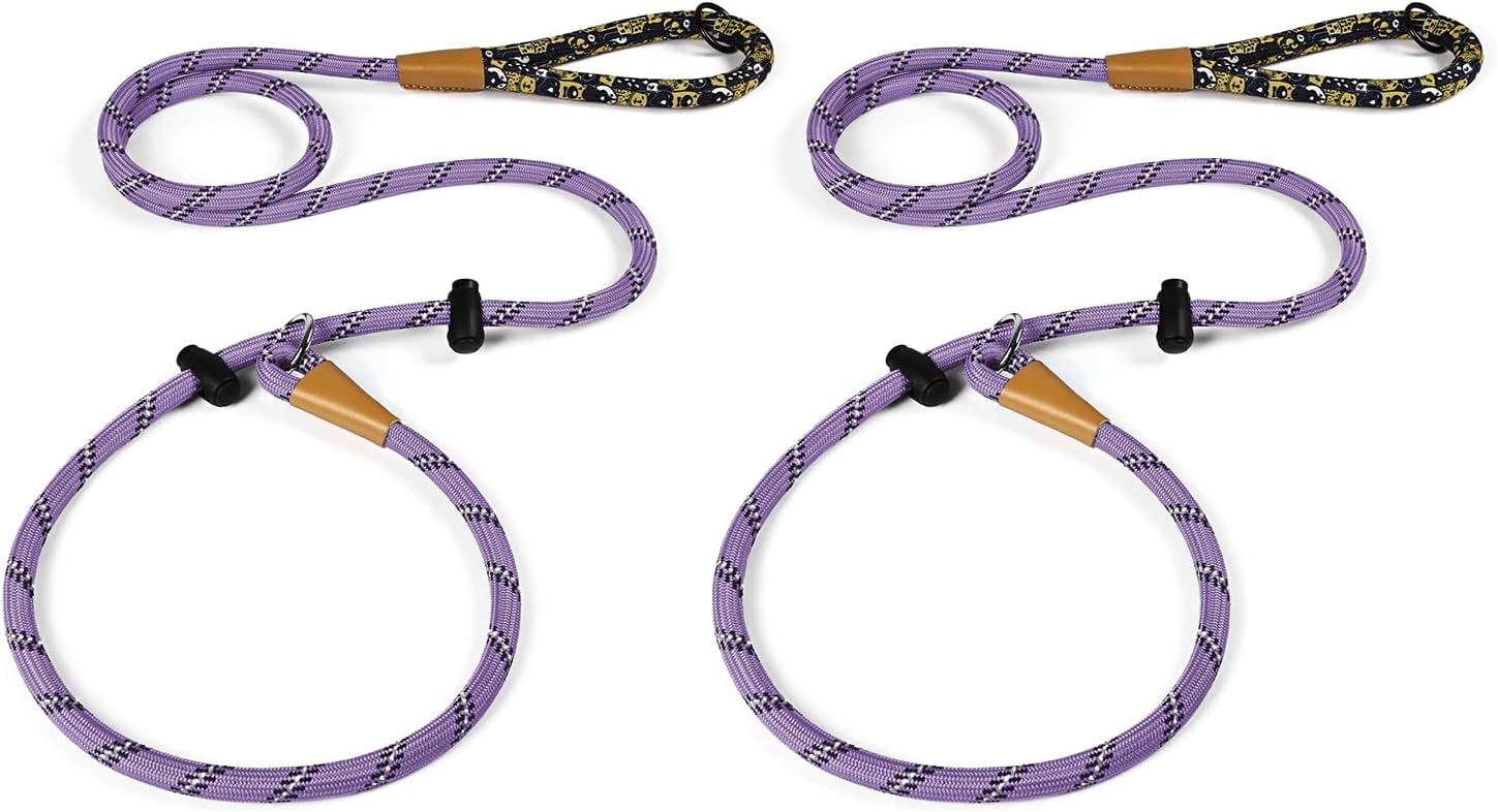 lynxking Slip Lead Dog Leash Reflective, Heavy Duty Comfortable Strong Rope for Large Medium Small Dogs No Pull Pet Training (Light Purple, 2PCS Large 1/2in x 6ft)