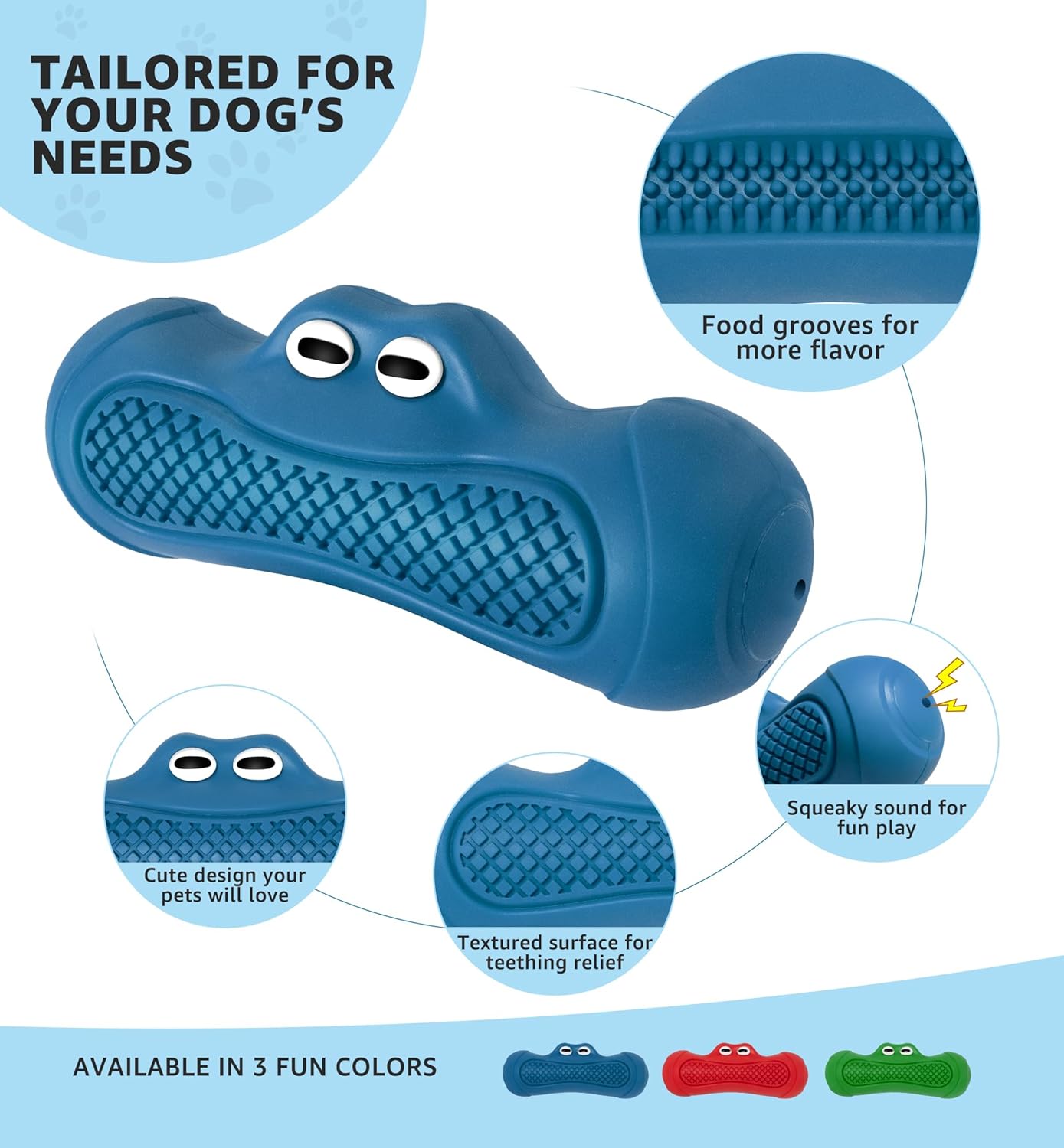 Durable Dog Chew Toy for Aggressive Chewers, Tough Natural Rubber Squeaky Dog Toy with Irresistible Beef Flavor, Dental Care, Teeth Cleaning & Boredom Relief for Medium & Large Dogs (Blue)