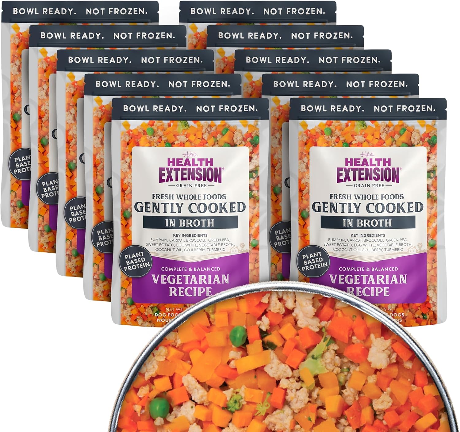 Health Extension Gently Cooked Grain-Free Vegetarian Formula Dog Food, Human-Grade & Shelf-Stable with Superfoods, Supports Digestion, Immunity, Skin & Coat, 9 oz Pouch (Pack of 10)