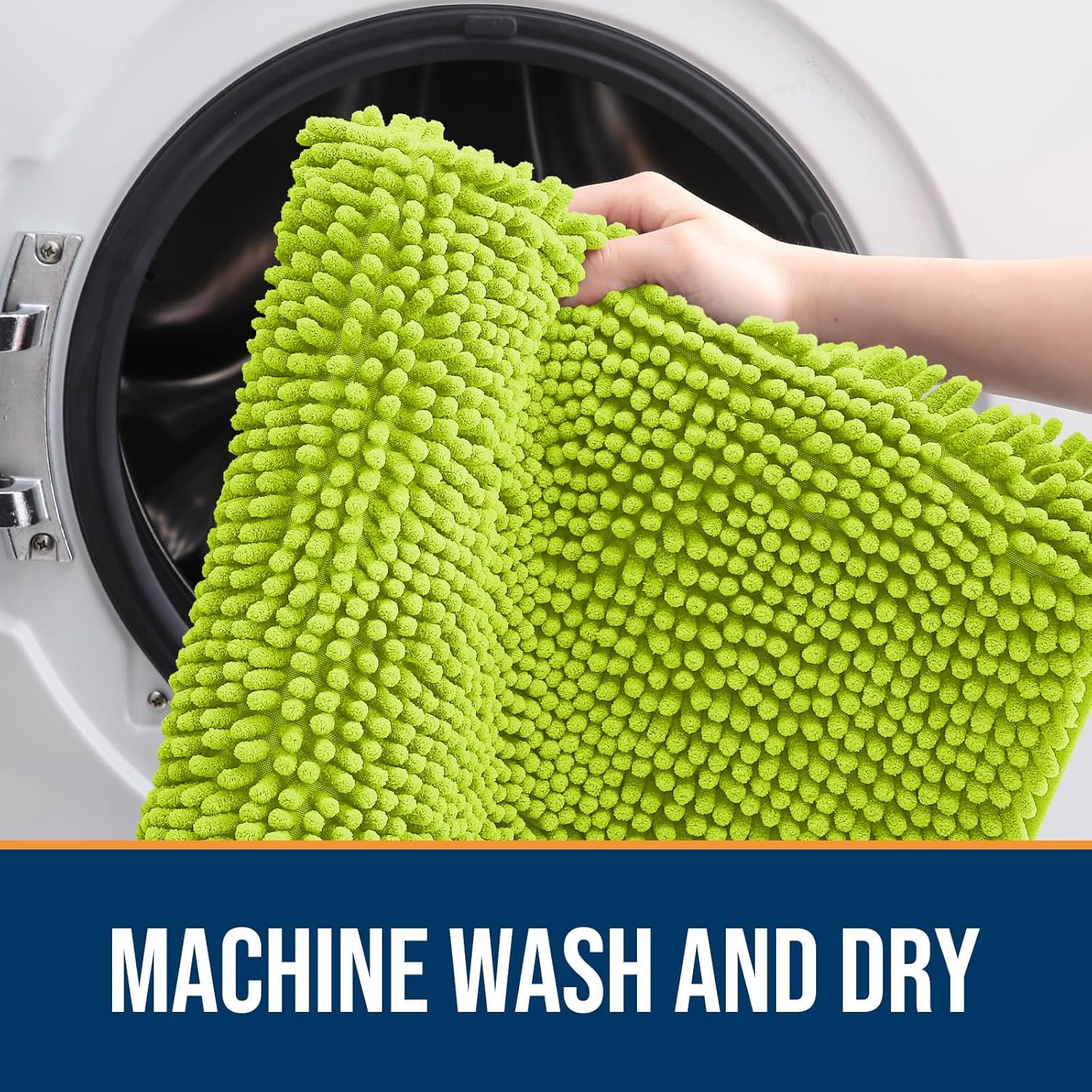 OLANLY Dog Door Mat for Muddy Paws 30x20, Absorbs Moisture and Dirt, Absorbent Non-Slip Washable Doormat, Quick Dry Chenille Mud Mat, Entry Indoor Entryway Carpet for Inside Floor, Bright Green
