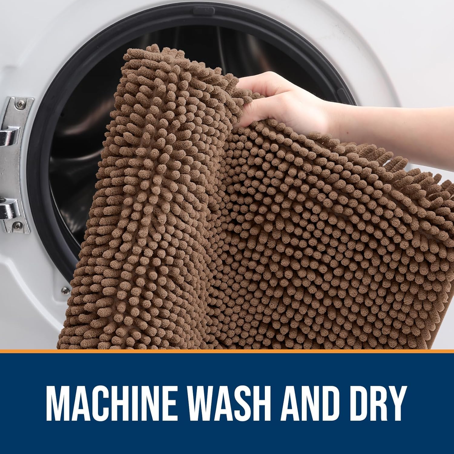 OLANLY Dog Door Mat for Muddy Paws 36x24, Absorbs Moisture and Dirt, Absorbent Non-Slip Washable Doormat, Quick Dry Chenille Mud Mat for Dogs, Entry Indoor Entryway Carpet for Inside Floor, Mocha