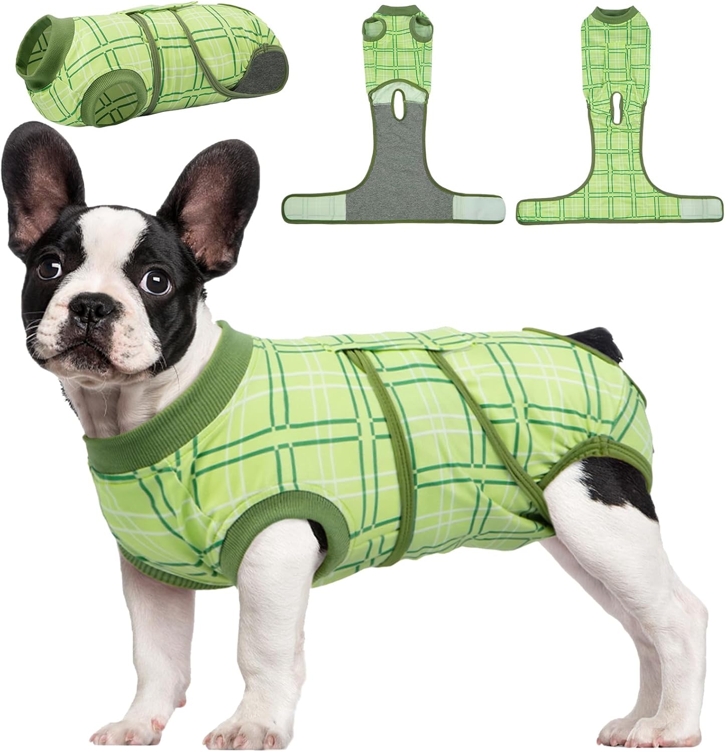 Kuoser Dog Recovery Suit for Female Male Dogs, Post-Surgery Bodysuit for Spay Neuter, Dog Onesie After Surgery, Anti-Licking Pet Surgical Recovery Suit, Green XS