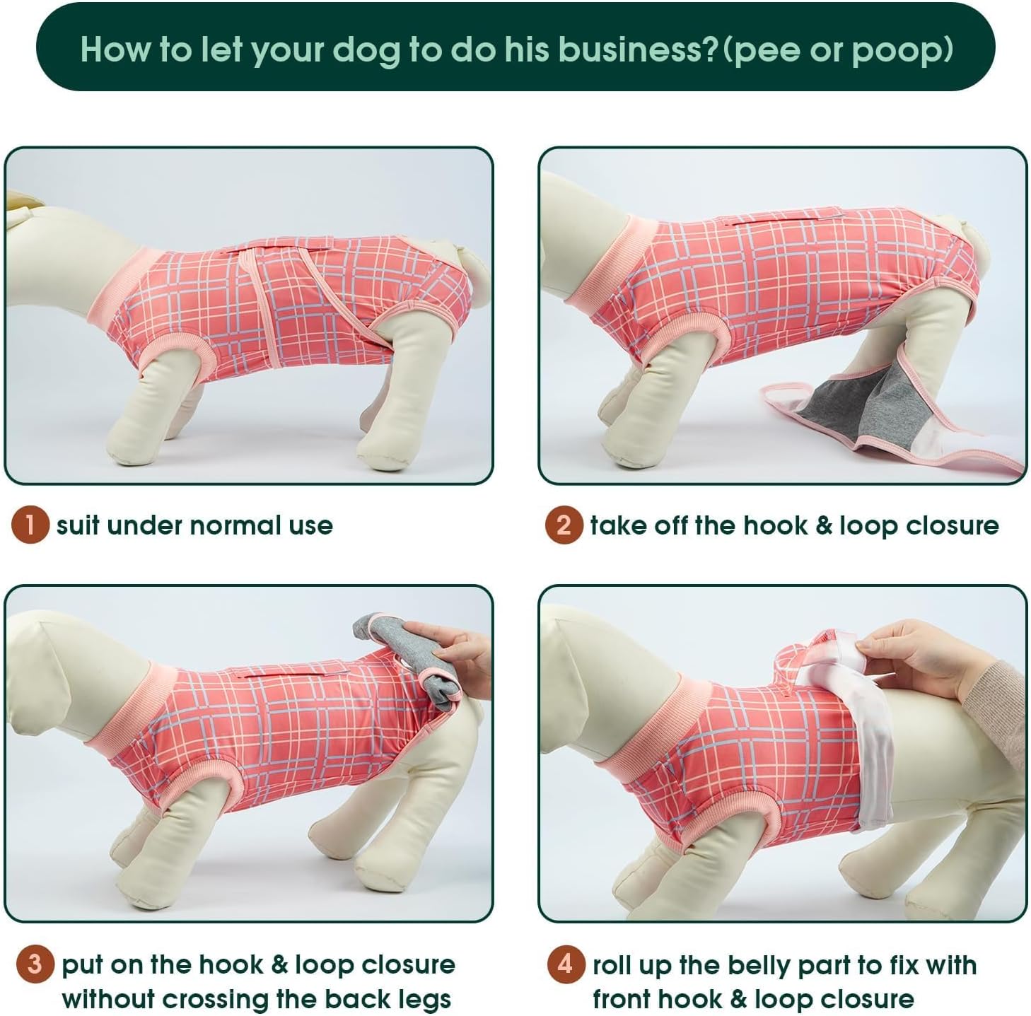 - RECOVERY SUIT for MALE FEMALE DOGS: Suitable for spaying and neutering, with an adjustable back length and closure for easy donning and doffing. Machine washable, easy to clean and dries quickly to ensure optimal hygiene for your pet during recovery