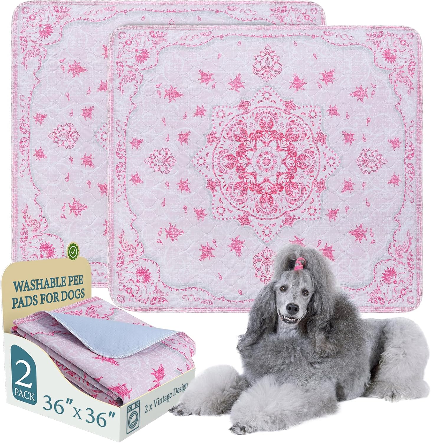 Homimp Washable Pee Pads for Dogs, 2 Pack Reusable Puppy Pads Waterproof, Absorbent and Leakproof Dog Pee Pads, Non Slip Puppy Training Pads, Pet Mat for Floor,Crate,Couch,Whelping,Pink, 36"x36"