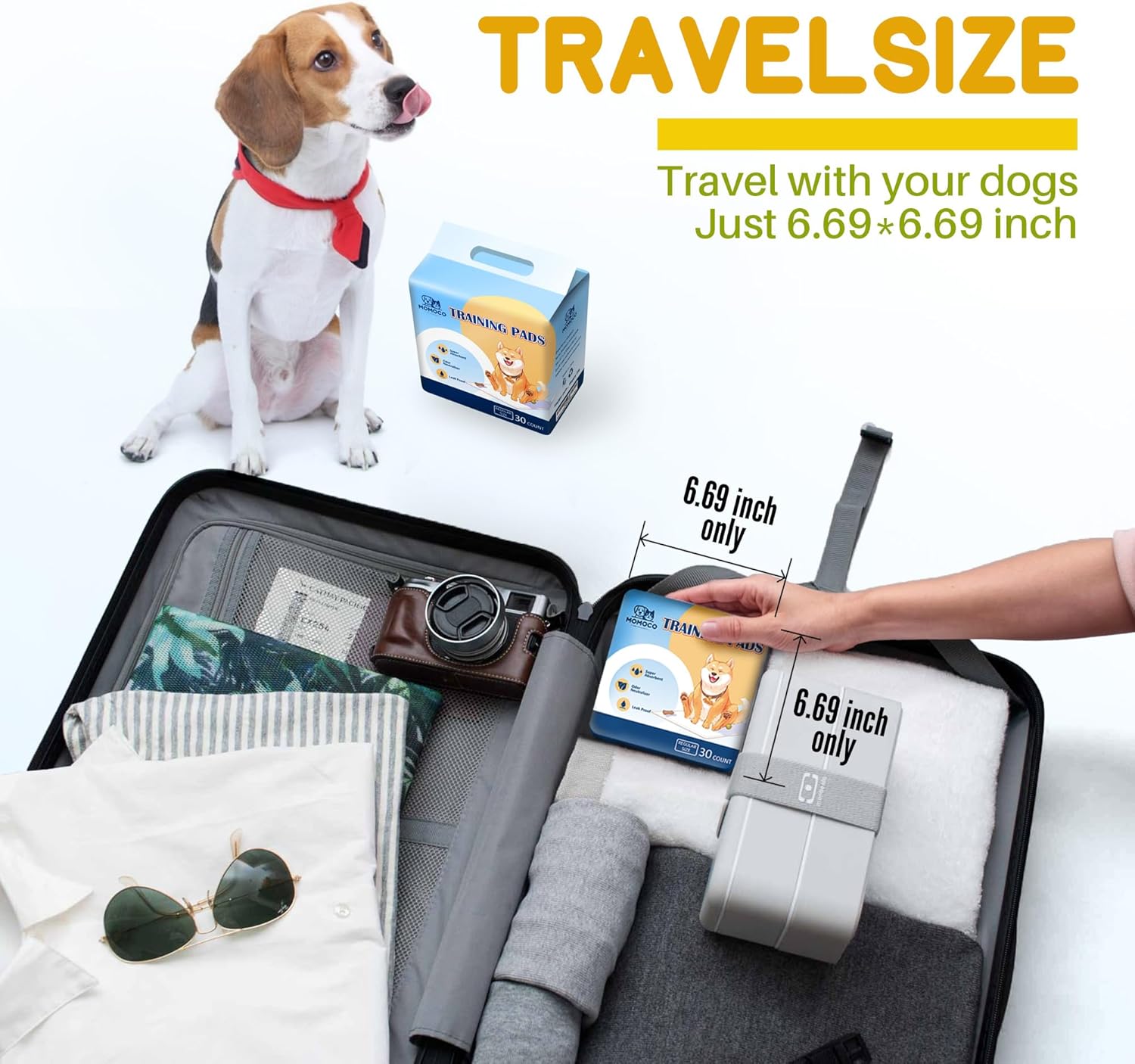 - 【SMALL AND PORTABLE, TRAVEL ESSENTIAL】: MoMoCo Puppy Training Pads come in a travel-friendly package, Easy to fit into backpacks and suitcases. Perfect for pet owners on vacation, allowing you to care for your furry friend anytime, anywhere