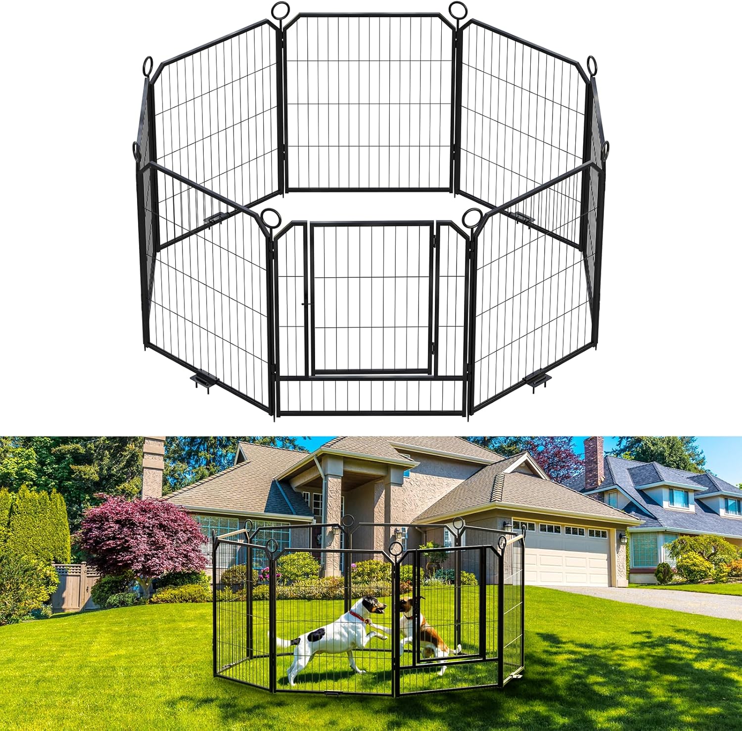 Dog Playpen Outdoor,16 Panel Dog Fence with Gate for Yard,Pet Exercise Pen for Rv Camping Garden for Medium Dogs with Fixed Stakes(32inch)