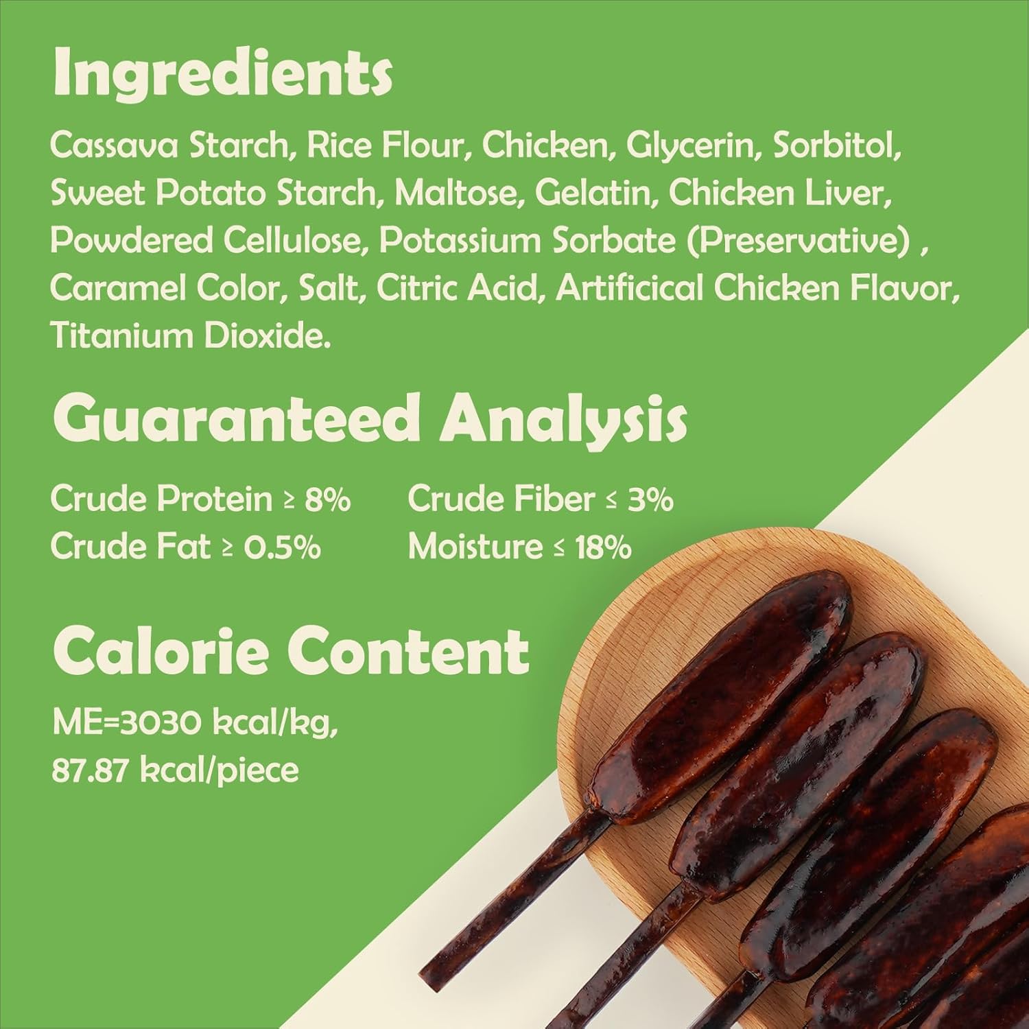 - [Natural Ingredients] Rawhide Free. Made with Cassava Starch, Rice Flour, Chicken, Sweet Potato Starch. Low-fat, easy to digest.