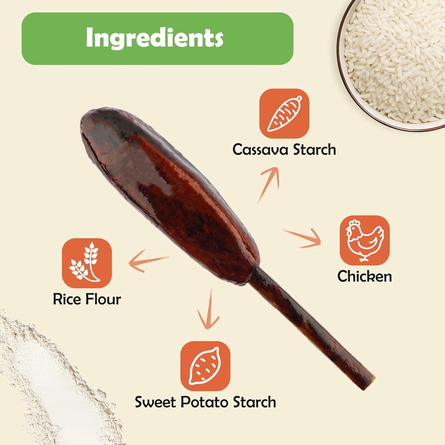 - [Natural Ingredients] Rawhide Free. Made with Cassava Starch, Rice Flour, Chicken, Sweet Potato Starch. Low-fat, easy to digest.