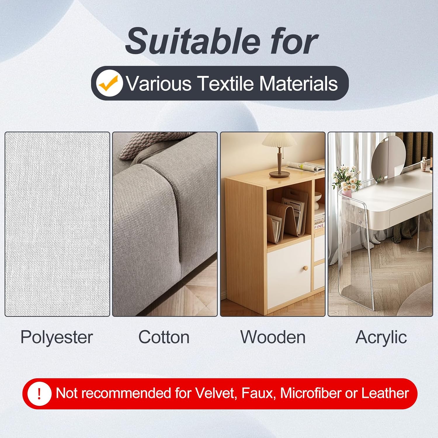 - Versatile Self-Adhesive: Adheres easily to polyester, cotton, wood, and acrylic surfaces but not recommended for leather, faux leather, velvet, or microfiber. Before using , please clean the pasting area first with a damp cloth or vacuum. Avoid alcohol-based cleaners to maintain stickiness. The self-adhesive backing simplifies installation, leaving no residue, eliminating the need for nails or hooks.