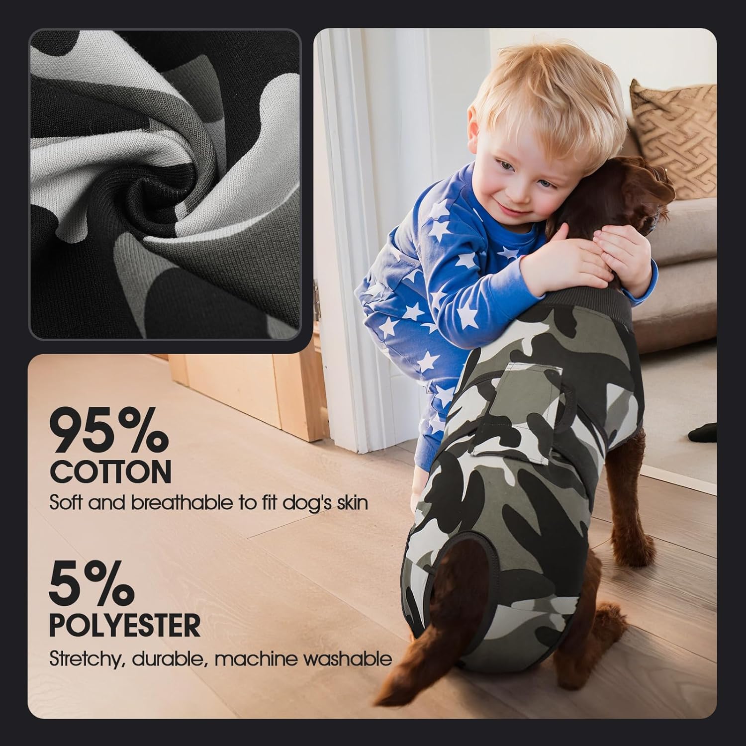 FUAMEY Dog Recovery Suit Male,Dogs Surgery Neuter Suits Puppy Spay Shirts for Female Protect Dog's Skin Anti Licking Abdominal Wounds Doggie Onesie Pet Bodysuit Alternative to Cone Grey Camouflage XXL