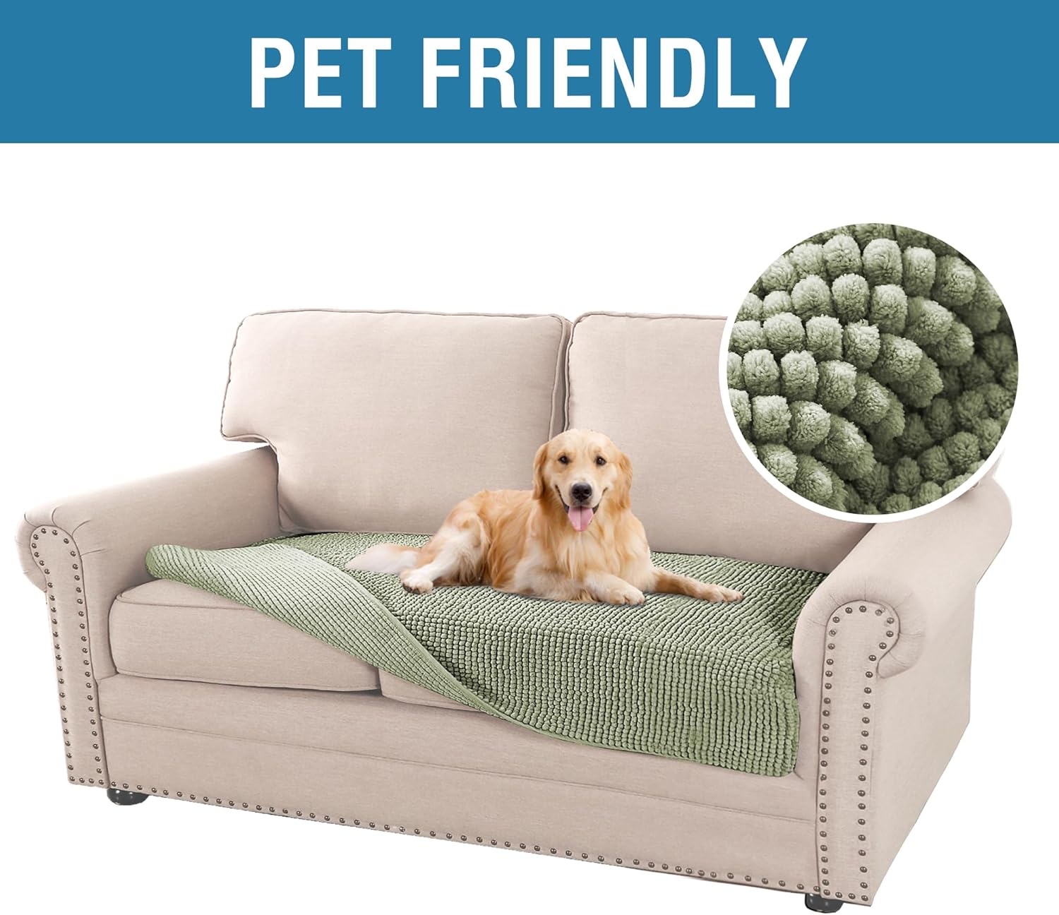 H.VERSAILTEX Plush Chenille Dog Bed Cover Thick Soft Sofa Covers Loveseat Cover for 2 Cushion Couch Anti Slip Couch Cover Furniture Protector for Dog, Pet, Cat (35" x 62", Sage)
