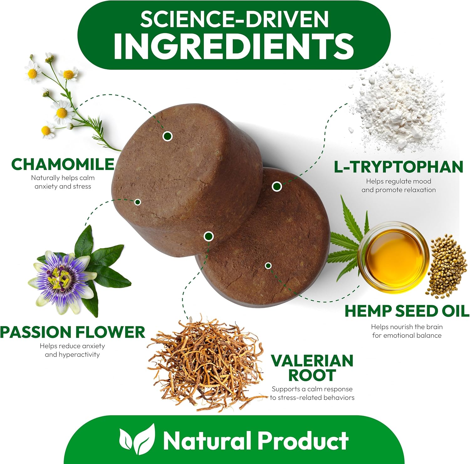 - Effective Anxiety & Stress Relief: These calming treats for dogs help reduce nervousness, barking, stress from thunderstorms, separation or travel, promoting relaxation and overall well-being.
