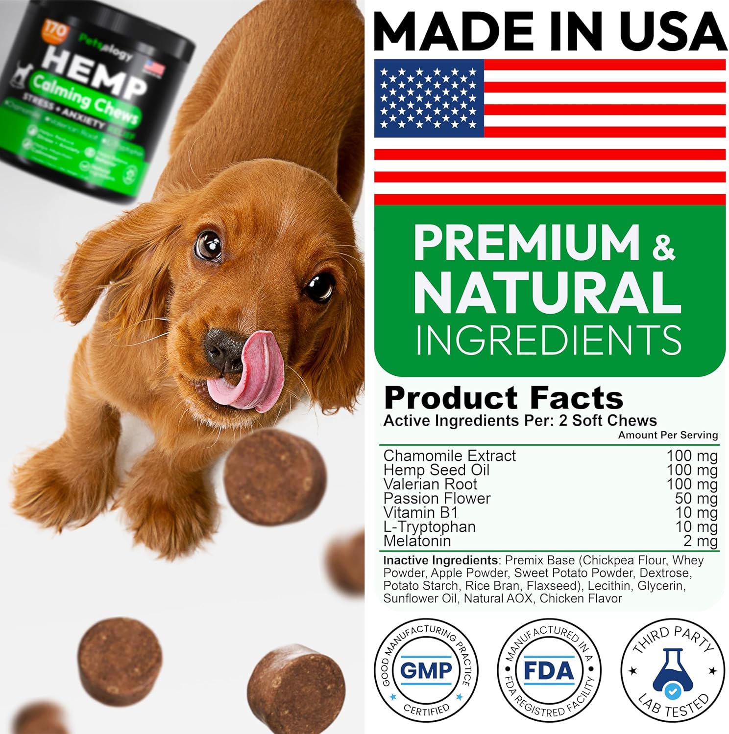 Hemp Calming Chews for Dogs - 170 Dog Calming Chews - Anxiety Relief Treats - Advanced Stress Relief Supplement, Separation Aid, Barking, Fireworks, Melatonin - Hip & Joint Support - Made in USA