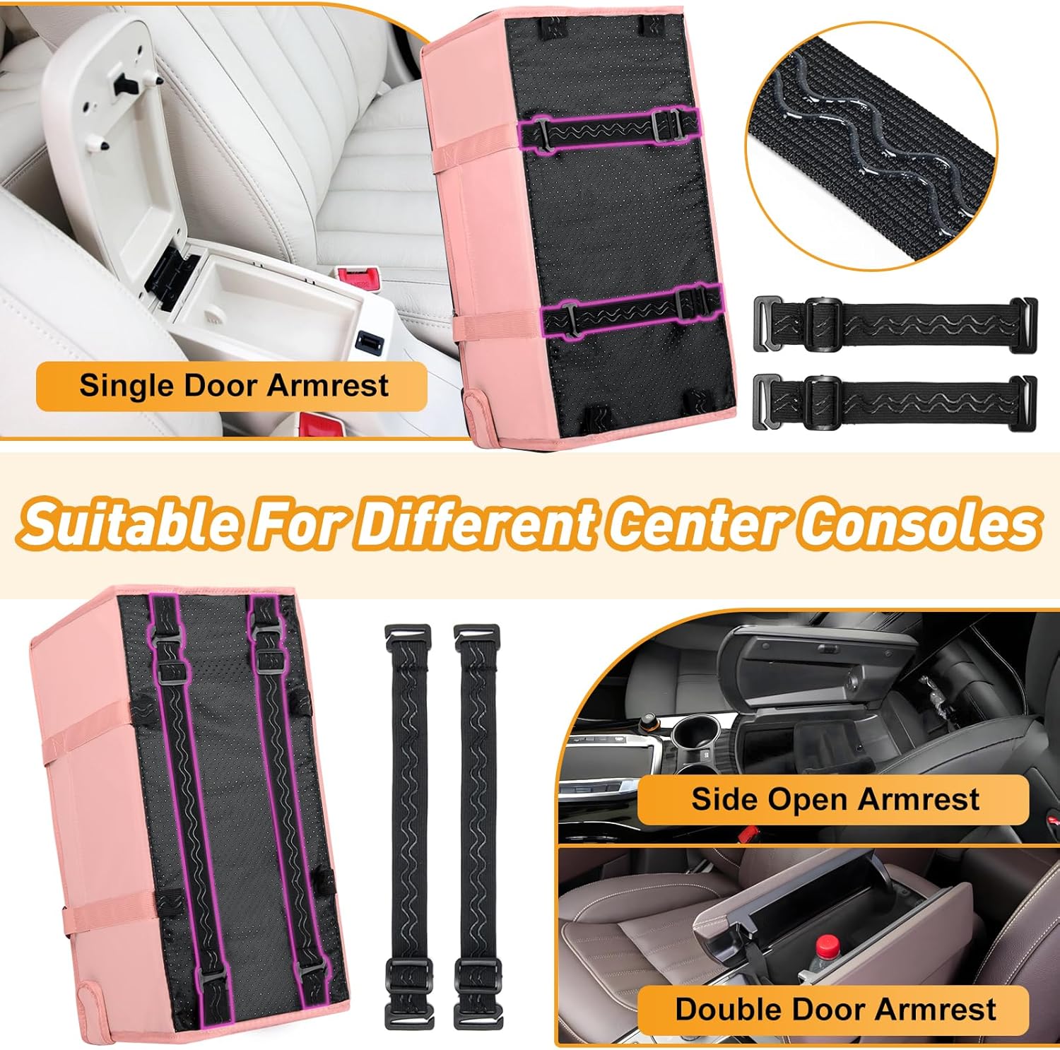 - 【Suitable for Different Central Consoles】The bottom strap of the console dog car seat in pink can be connected horizontally or vertically to accommodate different car models. The center console dog car seat is equipped with 2 adjustable bottom straps, which fix the bottom anti-slip elastic strap to the center console, making the seat more tightly fit on the car armrest, preventing shaking and falling off.