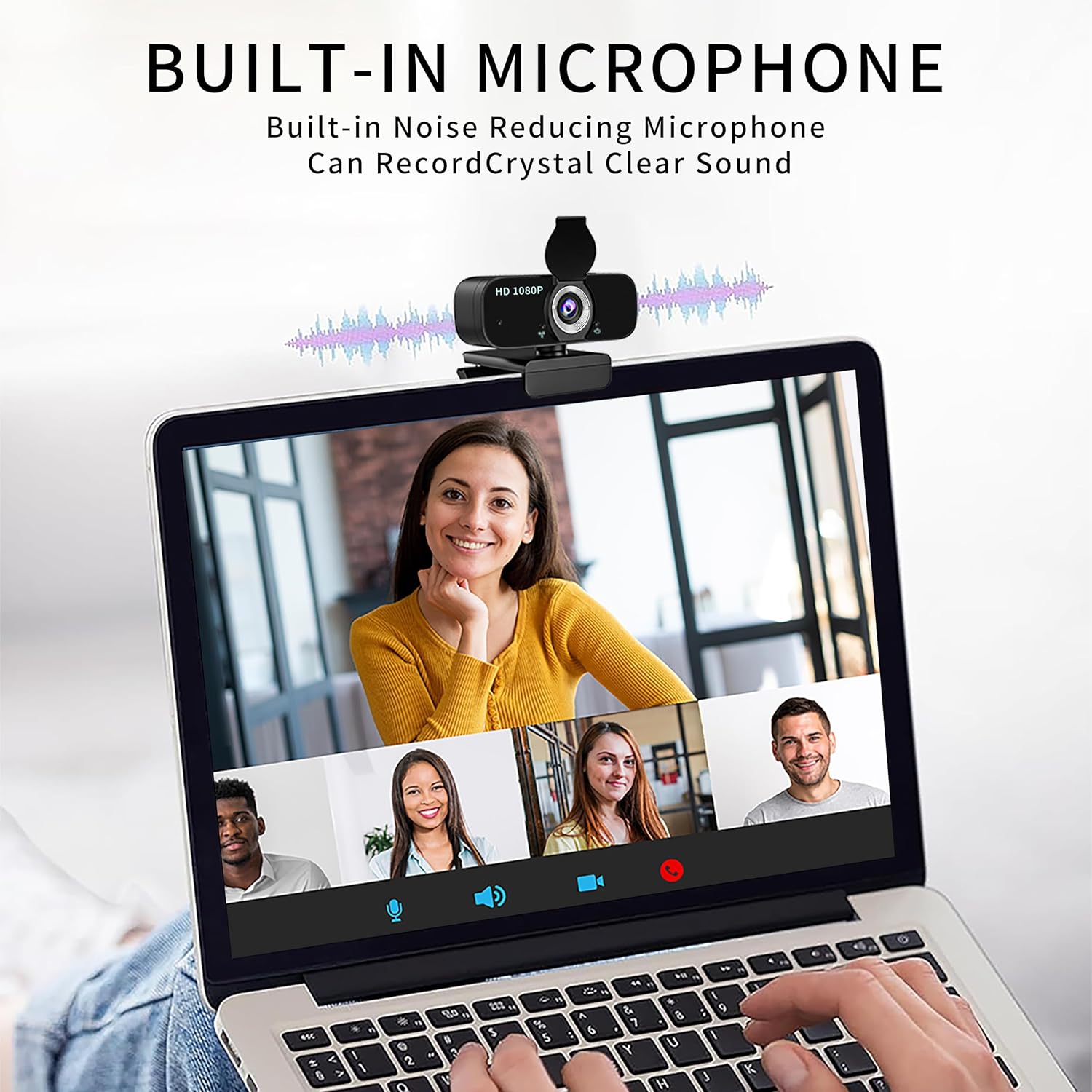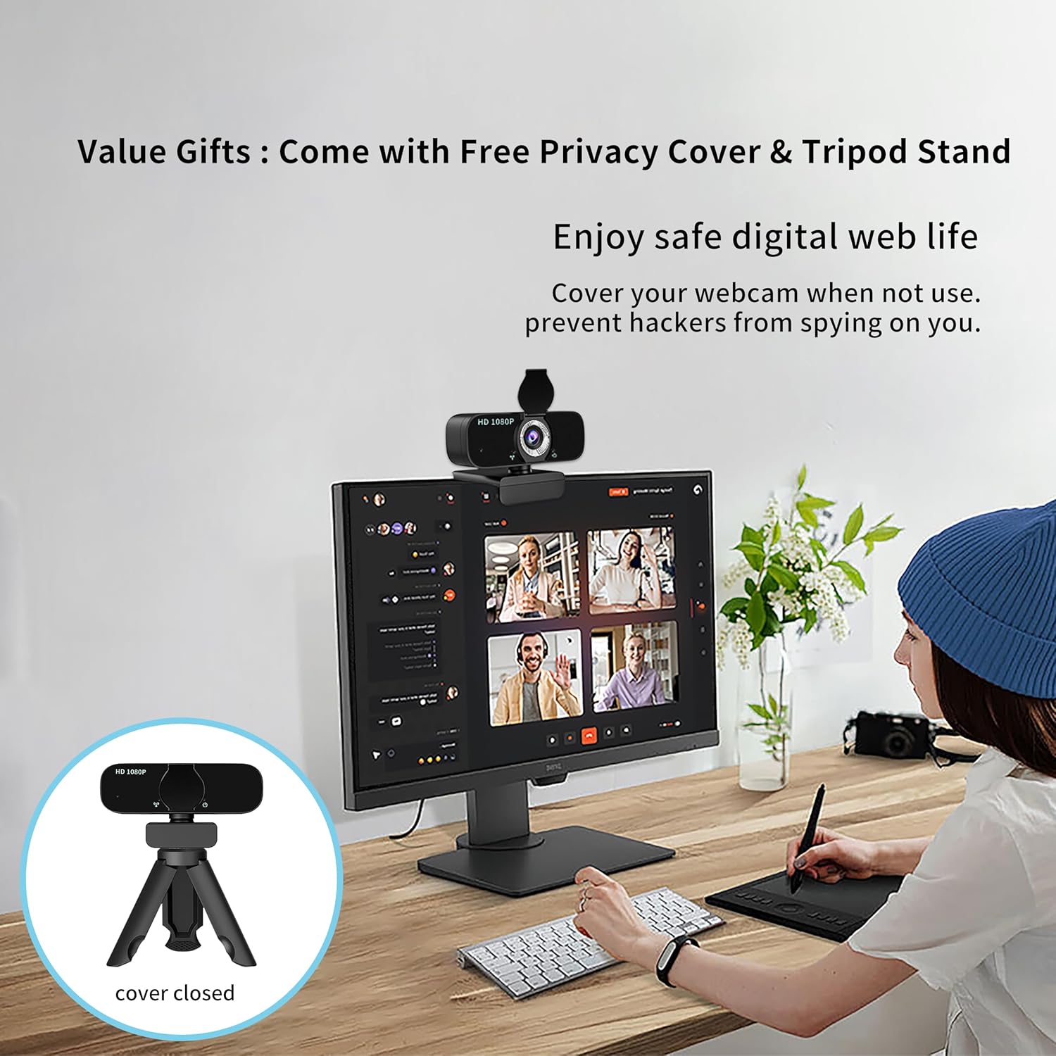 1080P Webcam for Computer/Laptop/Desktop/PC, External Camera with Microphone, USB Plug&Play, Auto Low Light Correction, Privacy Cover, Tripod, Wide Angle for Meeting/Online Video/Zoom