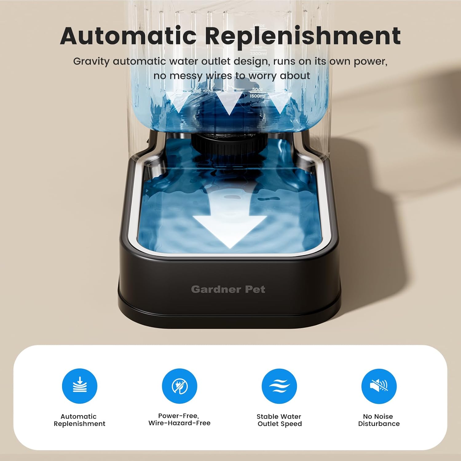 - Silent, Spill-Proof Design - Gravity water feeder is Motor-free operation ensures silent water dispensing. Anti-tip square base stays steady during play, while advanced filtration keeps water fresh.