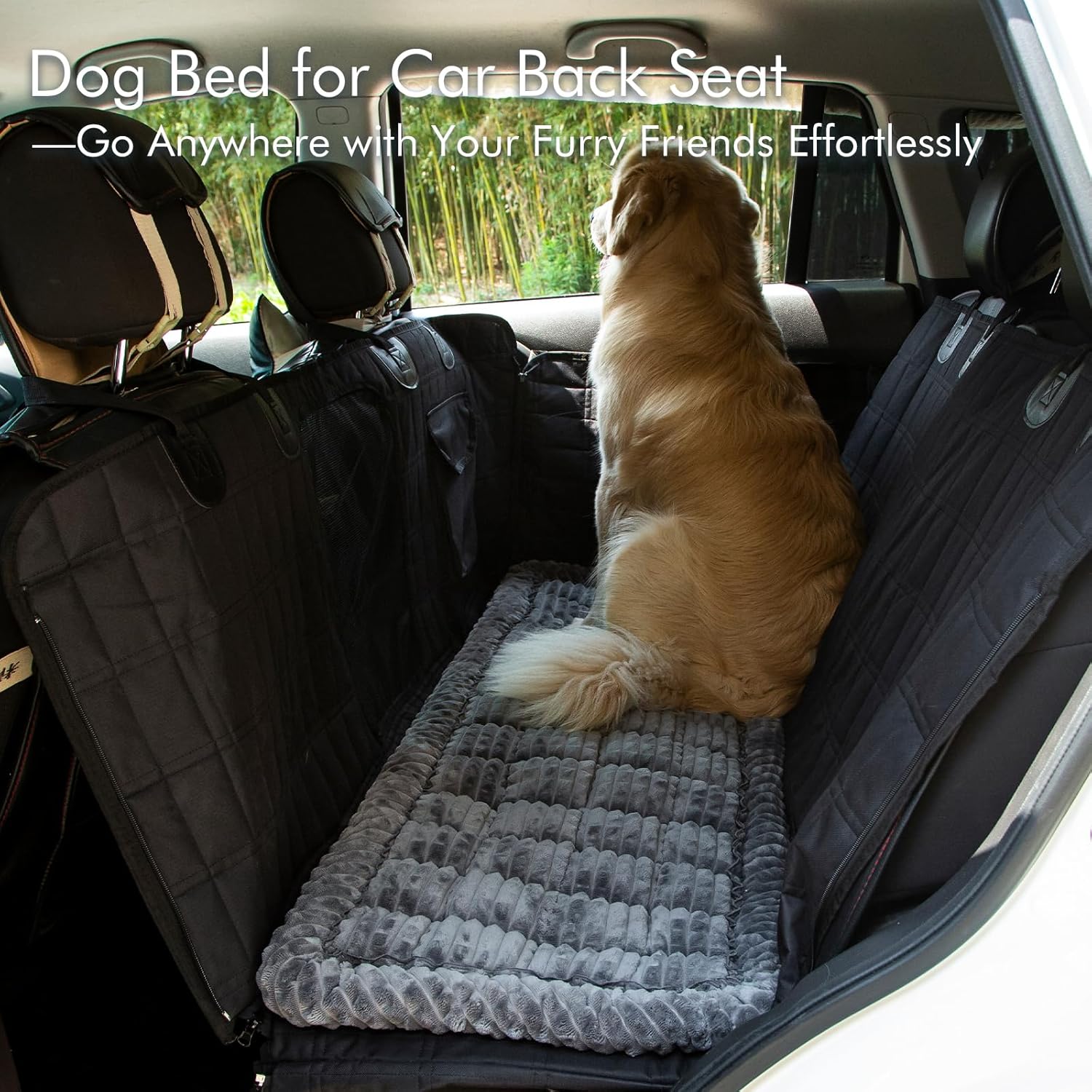 - Large dog bed for car back seat measures 24.8"x54", fit for backseat extenders and seat protectors, ideal as a cozy backseat dog bed mat for travel pet-friendly seat cover for cars
