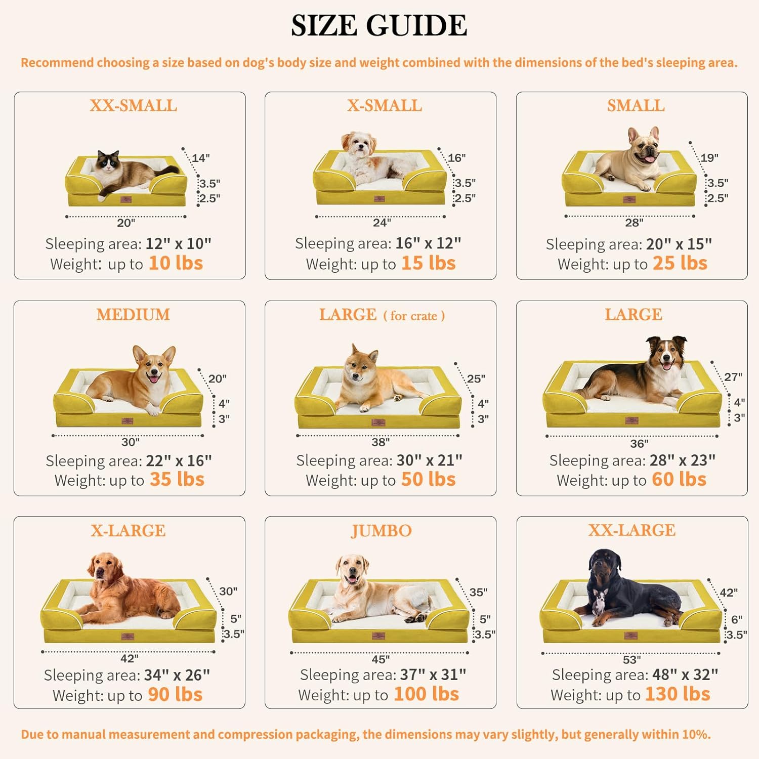 Comfort Expression Small Dog Beds Waterproof Orthopedic Foam Dog Sofa Beds for Medium Dogs Comfy Pet Bed with Washable Removable Cover & Non-Slip Bottom(Small,Spicy Mustard)