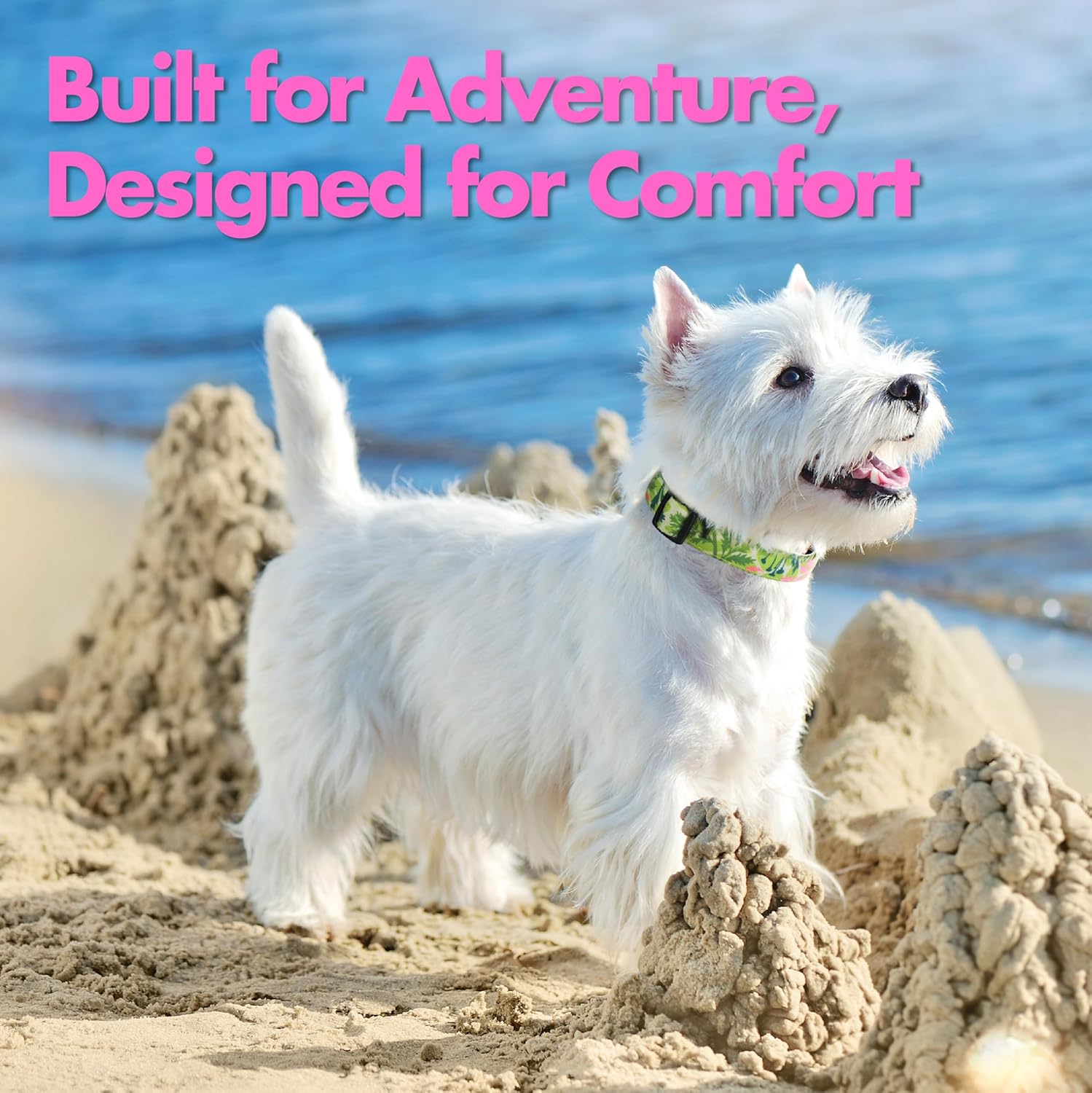 - FIND YOUR PUP'S PERFECT LOOK! Choose from fresh, eye-catching designs: Tropical Vibes—a perfect match for your pup’s personality! Check our size chart carefully (measure and leave a 1-2 finger gap) to ensure the best fit. Need a different size? Contact us for a free exchange!