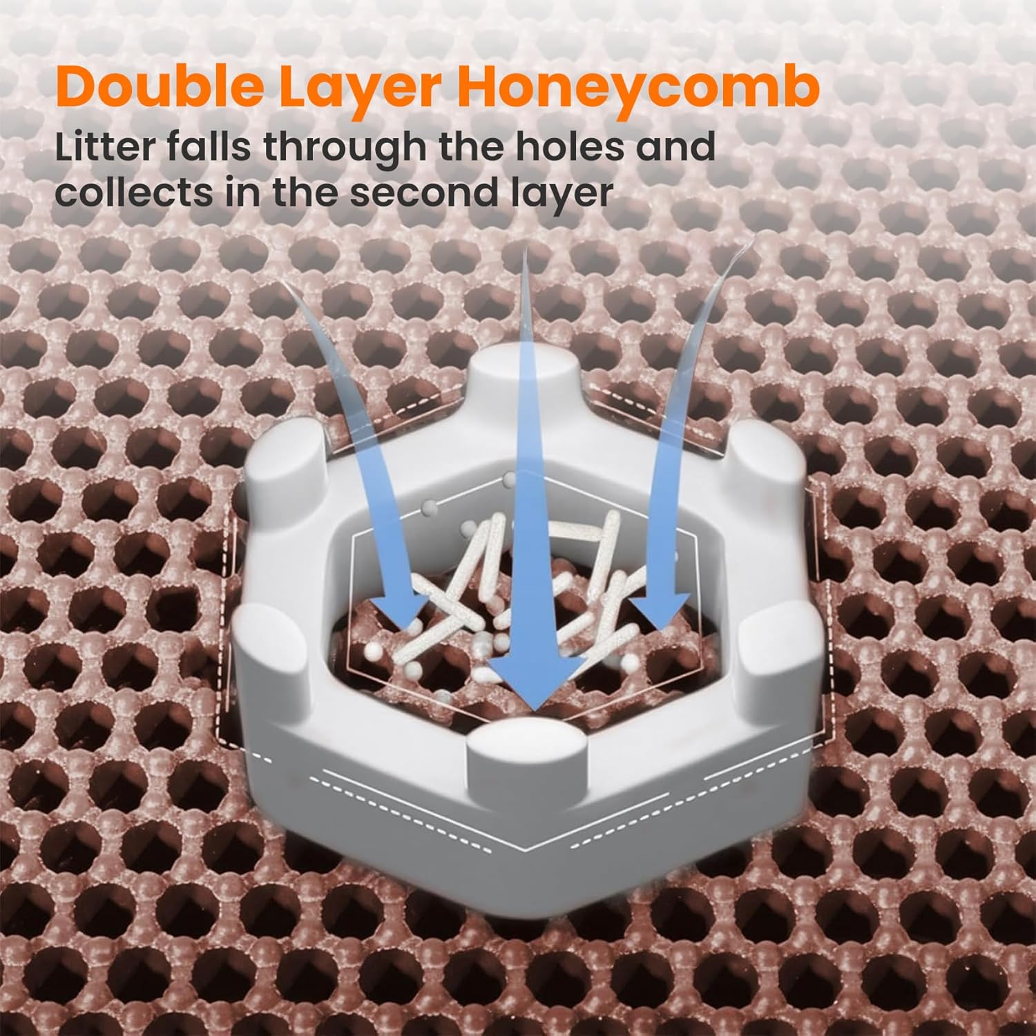 - Double Layer Honeycomb Construction: The extra large litter mat features a honeycomb top that traps all types of litter and lets it fall into the bottom layer for easy collection. Just lift, pour, and reuse—no mess, no hassle. Unlike ordinary mats, ours reduces waste, and makes daily cleaning faster and easier!