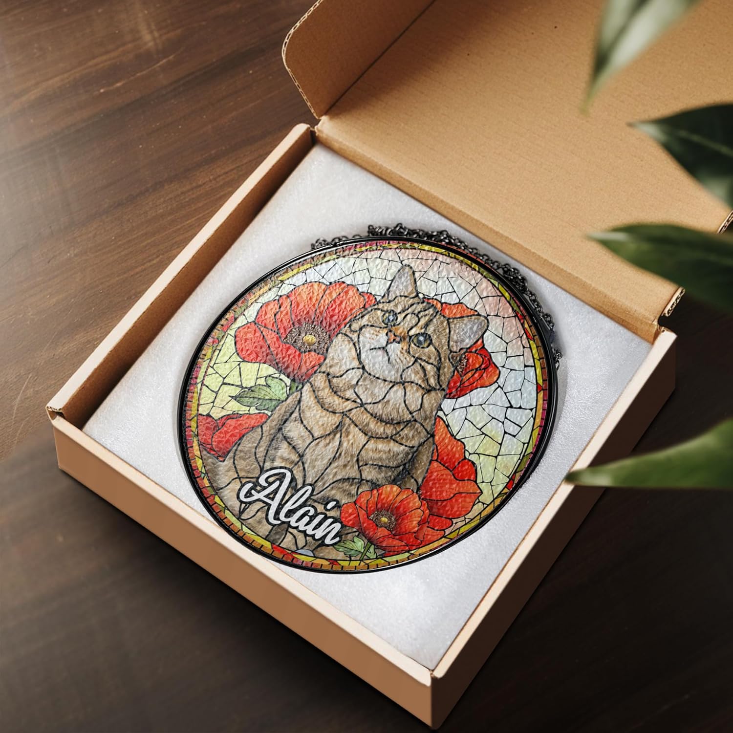 Lovely POD Personalized Cat Memorial Suncatcher Ornament, Suncatcher Stained Glass Windows for Pet, Sympathy Ornament Window Hanging Gift for Loss of Cat, Thoughtful Sympathy Gifts for Pet Day
